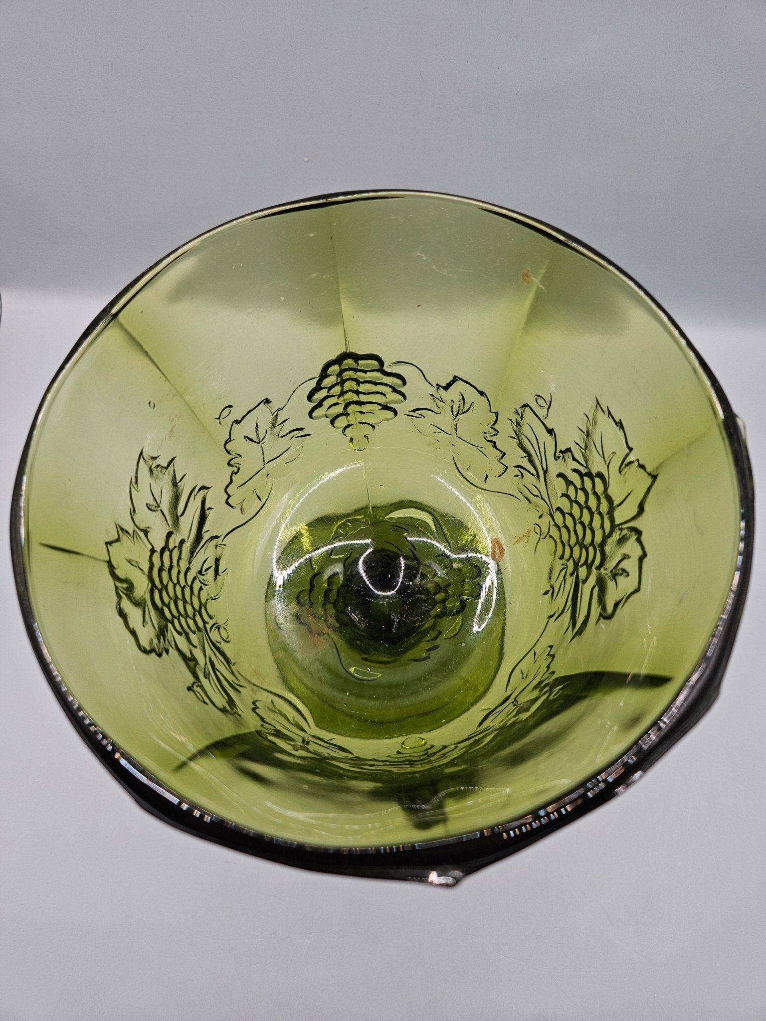 Vintage Colony Glass Harvest Green Grape Panel Footed Planter Vase