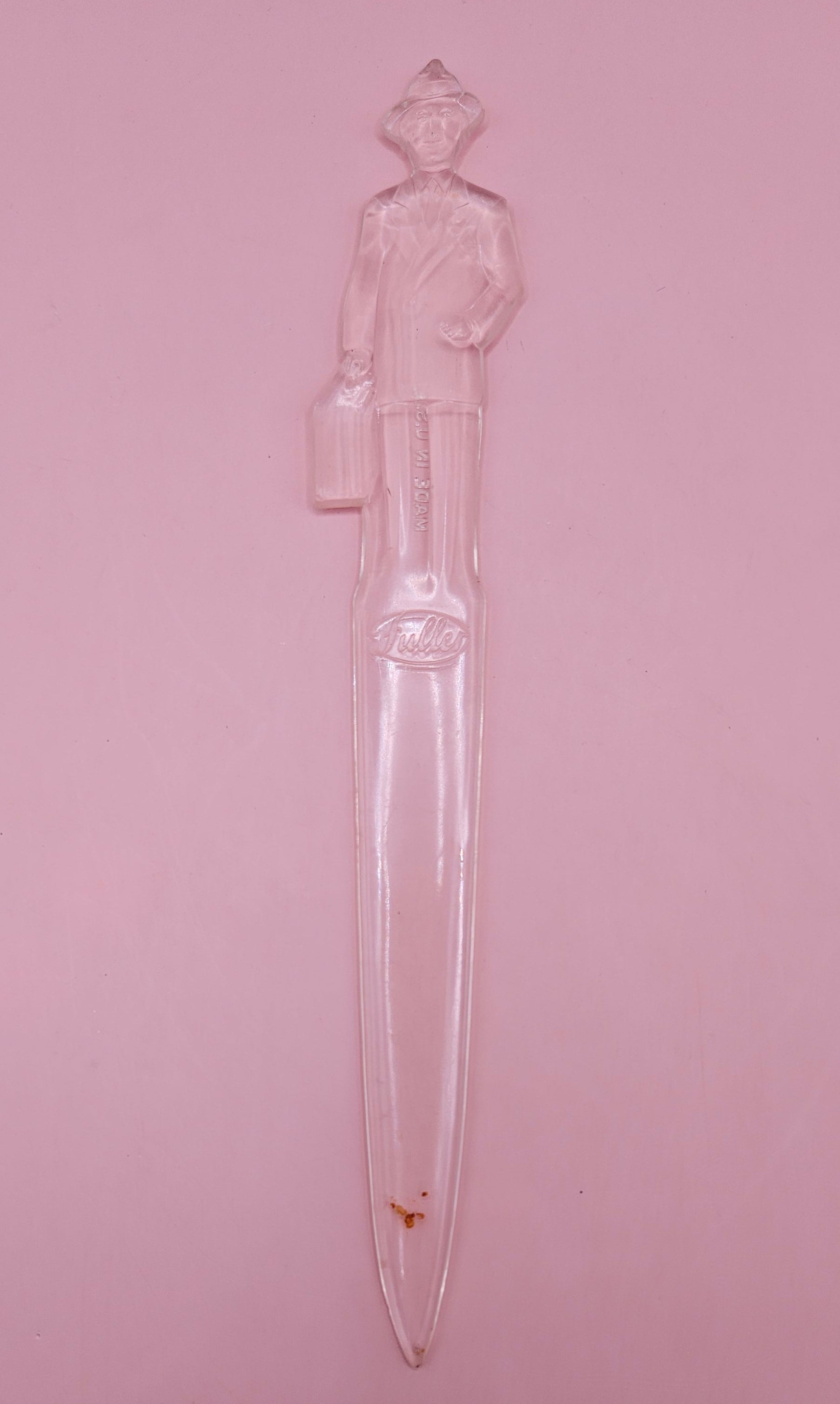 Vintage Fuller Brush Man Clear Plastic Letter Opener
