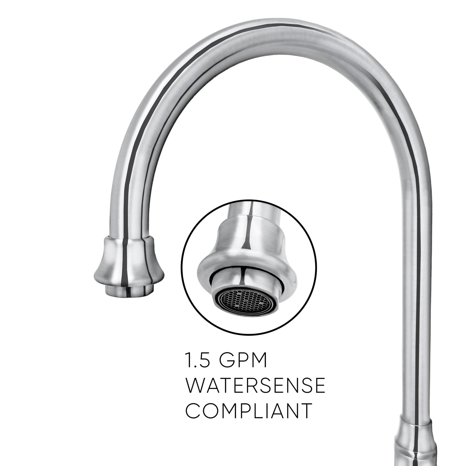 Vintage III Plus by Whitehaus Collection offers the finest craftsmanship and style that leaves a lasting impression in your kitchen. Designed to complement any home, Vintage III Plus kitchen faucets are made of solid brass that ensures durability and strength. Its features include a long gooseneck swivel spout, solid lever handles, durable solid brass side spray, and added bonus of Watersense compliance with 1.5 GPM water flow. Allow the unique elegance of a Vintage III Plus faucet to become the center piece in your home. Available in exquisite finishes to fit your design choice: Polished Chrome, Polished Nickel, Brushed Nickel, Antique Brass, Oil Rubbed Bronze