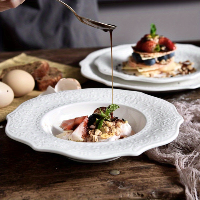 Vintage Lace Nordic Ceramic Dinner Plate Microwave Safe