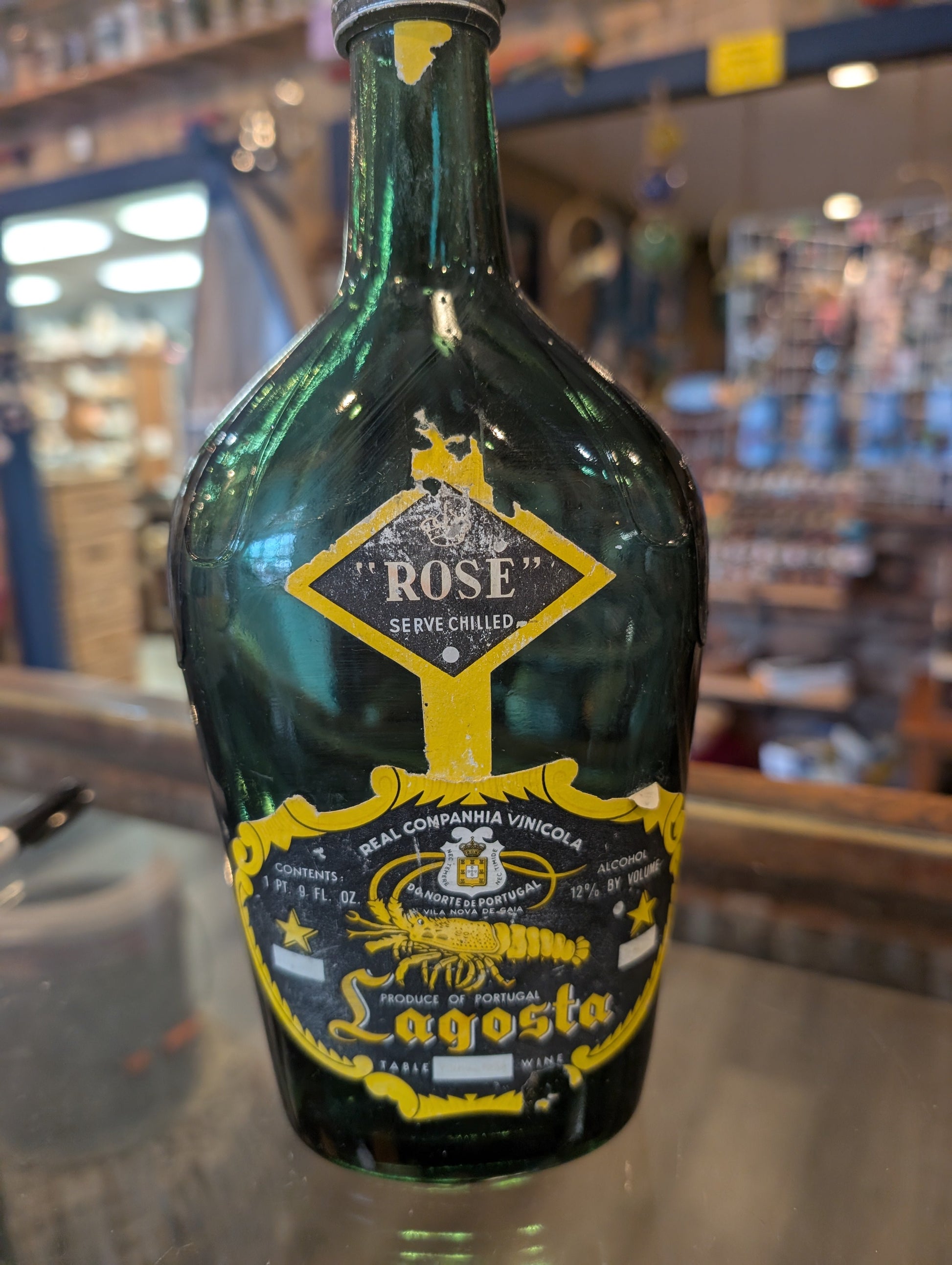 Approx 8" tall, awesome vibrant yellow shrimp graphics on green bottle.