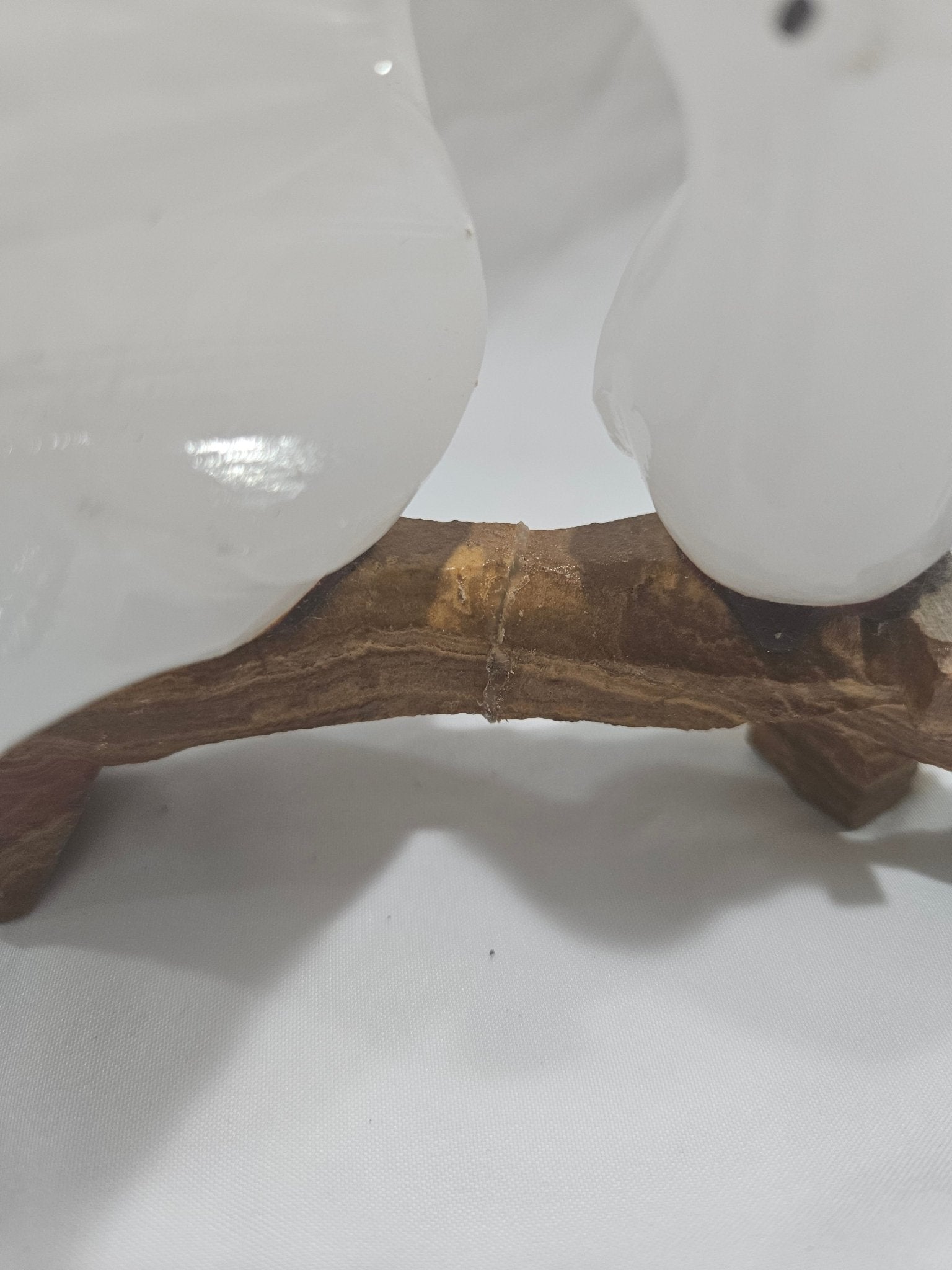Love birds flock together (and stick together) with this charming vintage onyx figurine. Perfect for any bird lover or anyone looking to add a touch of whimsy to their decor. A unique piece to adorn any shelf or mantel. Branch out with this one-of-a-kind find!