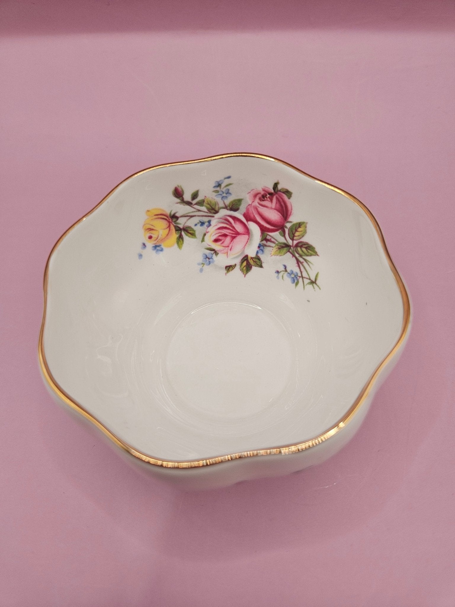 Vintage Queen Anne Creamer and Sugar Bowl Set – Floral Design with Gold Accents