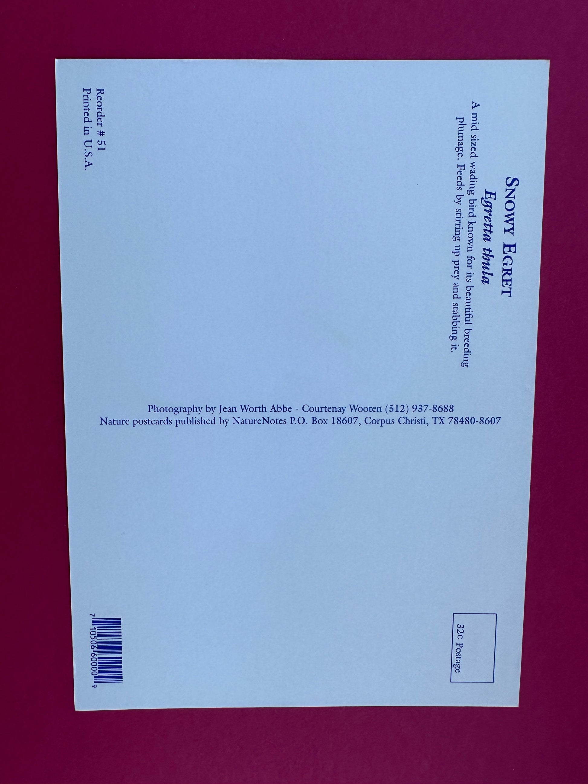 Vintage Snowy Egret Postcard