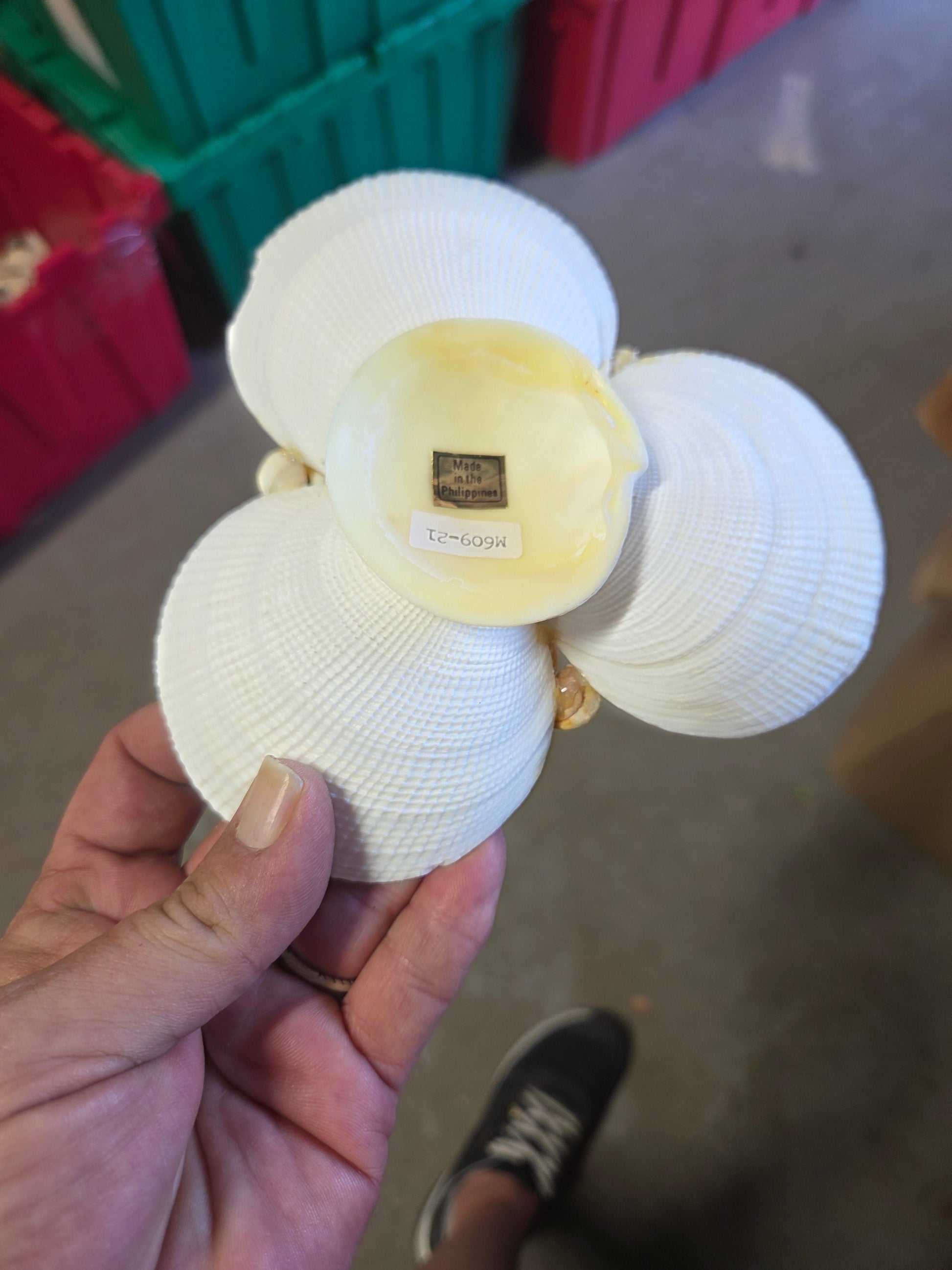 Vintage Shell Craft from 1980's. These adorable tigerina Clam Shell dishes are perfect for parties, vanities, salt cellars, etc. Made with 3 generous sized clams & intricate cut sliced shells. There's a beautiful patina to the glue used, showing evidence of the age. Add one to your collection today.