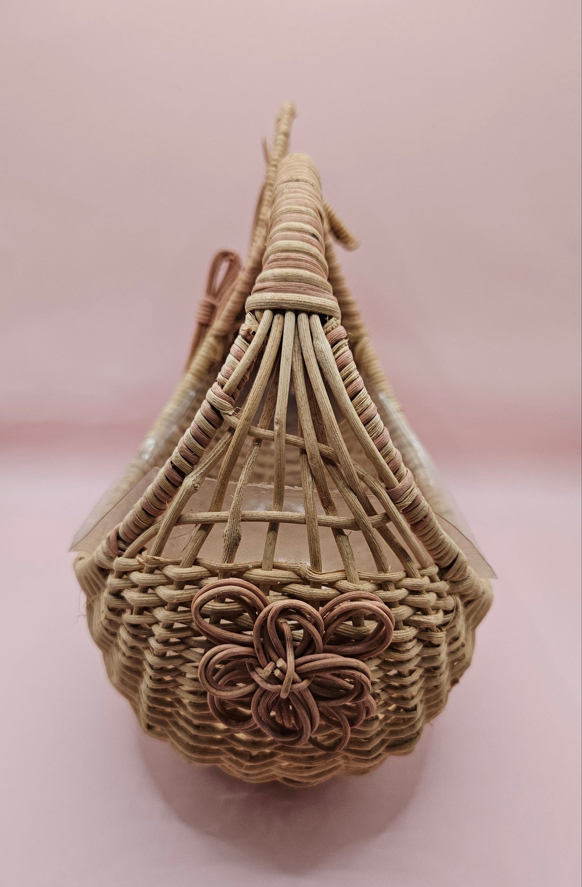 Handwoven wicker bunny basket with intricate detail