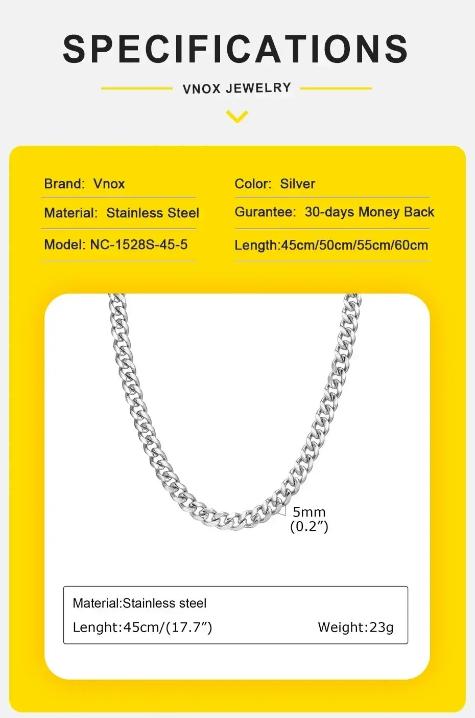 VNOX Cuban Chain Necklace - Stainless Steel 5/6/8mm - Unisex Waterproo