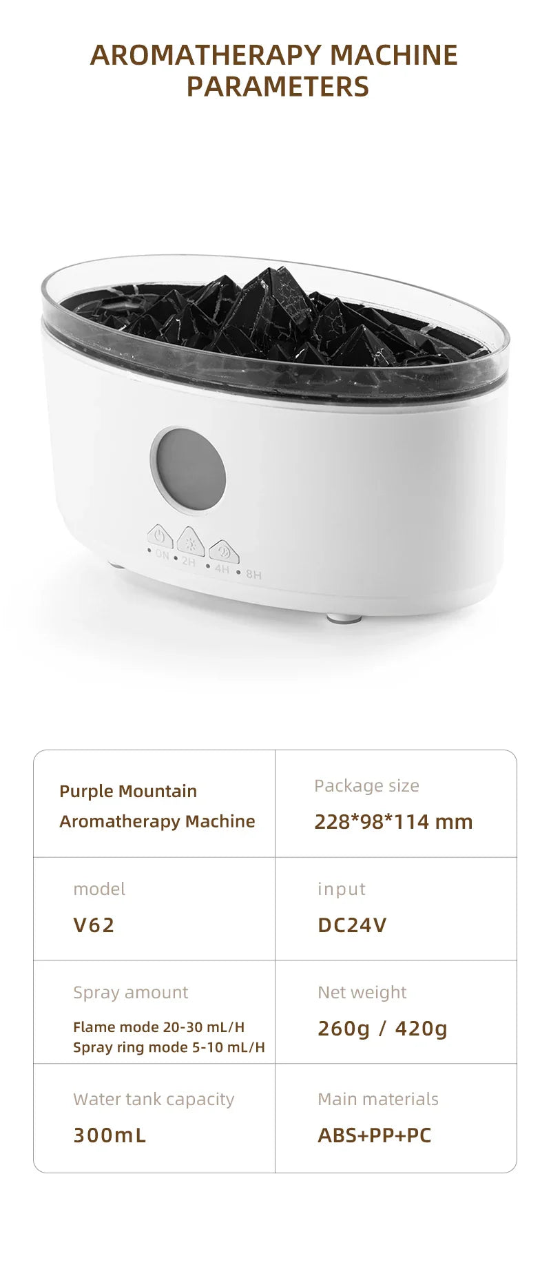 Witness the breathtaking verisimilitude of our diffuser's dual mist modes. The "Zijin Mountain" inspired design artfully simulates either a gentle, undulating volcanic flame or a mesmerizing, ephemeral jellyfish-like emanation from its dual-hole spray. This captivating spectacle is not merely decorative; it serves as a focal point for mindfulness and calm, perfectly complementing practices that seek to achieve inner peace. The integrated LED lighting system offers a curated selection of warm, blue, or purple light, further enhancing the visual symphony and allowing you to tailor the ambiance to your precise mood or decor. The mountain-shaped internal decoration adds another layer of sophisticated, naturalistic charm.