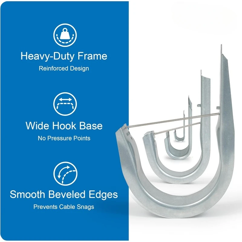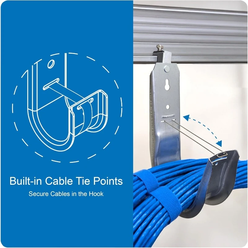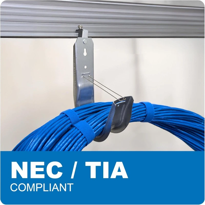- WIDE COMPATIBILITY - Our wall mount cable hooks are ideal for CAT5e, CAT6, CAT6A, coax, fiber optic cables, and conduit, providing a comprehensive solution for structured cabling systems and cable management. These wire hooks securely route and support cables along ceilings or walls in offices, data centers, and other networking environments.