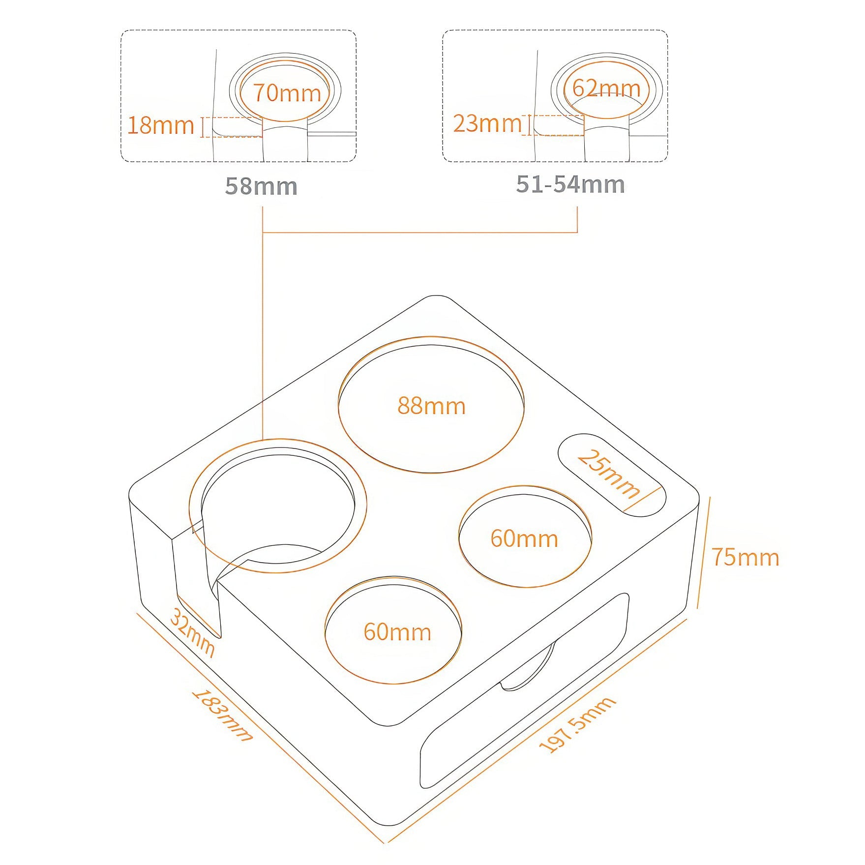 Comprehensive Tool Storage: Features 88mm diameter large slot plus standard slots to accommodate distributors, tampers, powder needles, and various large tools in one convenient station for easy organization and cleaning.