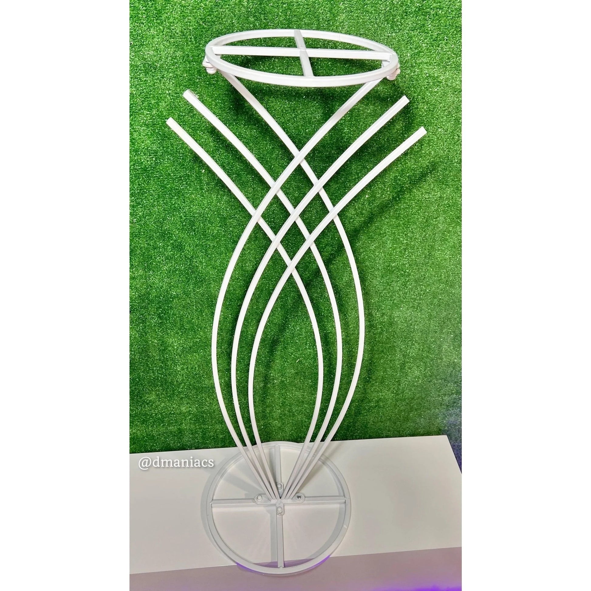 This contemporary Wedding Table Geometric Centerpiece, standing an impressive 40" tall, marries modern design with classic elegance. With its sleek white frame and optional ivory-themed flower arrangements, it offers a fresh take on traditional wedding decor. The geometric design adds a touch of modern sophistication, making it an ideal statement piece for your wedding tablescape.
