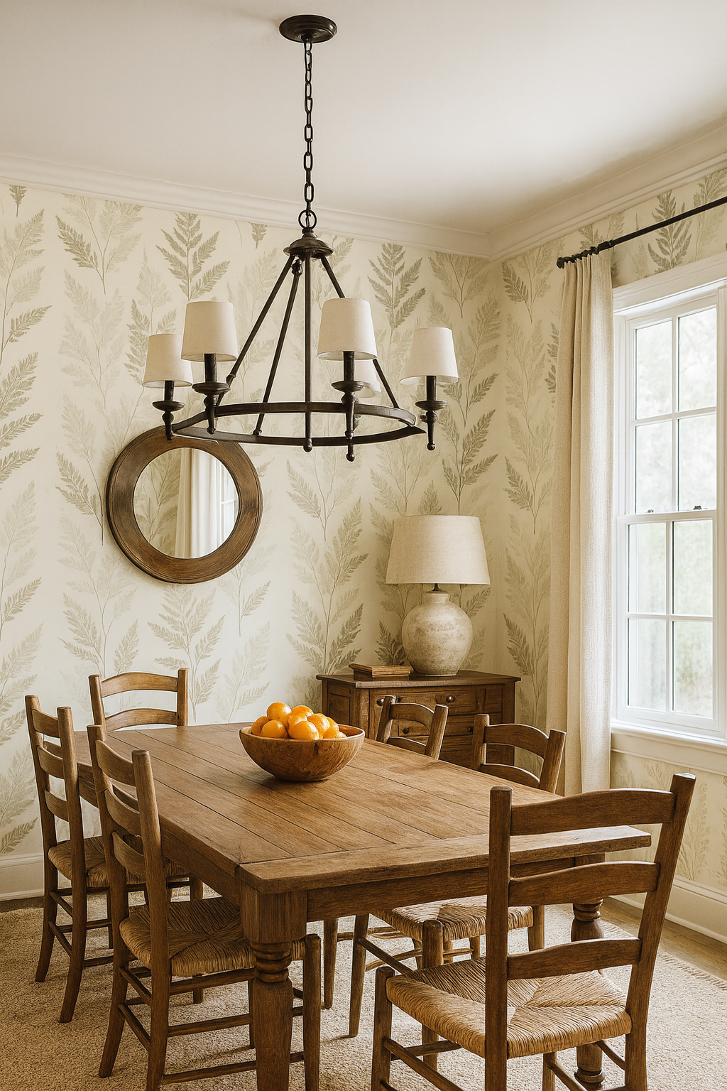 Soft and ethereal, Whisper Fern Ink showcases fine pencil-style sketches of fern fronds delicately spaced on a pale parchment-toned background. The monochromatic elegance and minimalist nature-inspired design evoke calm and quiet sophistication. Perfect for powder rooms, reading nooks, or spa-inspired interiors, this pattern adds organic beauty without visual noise.