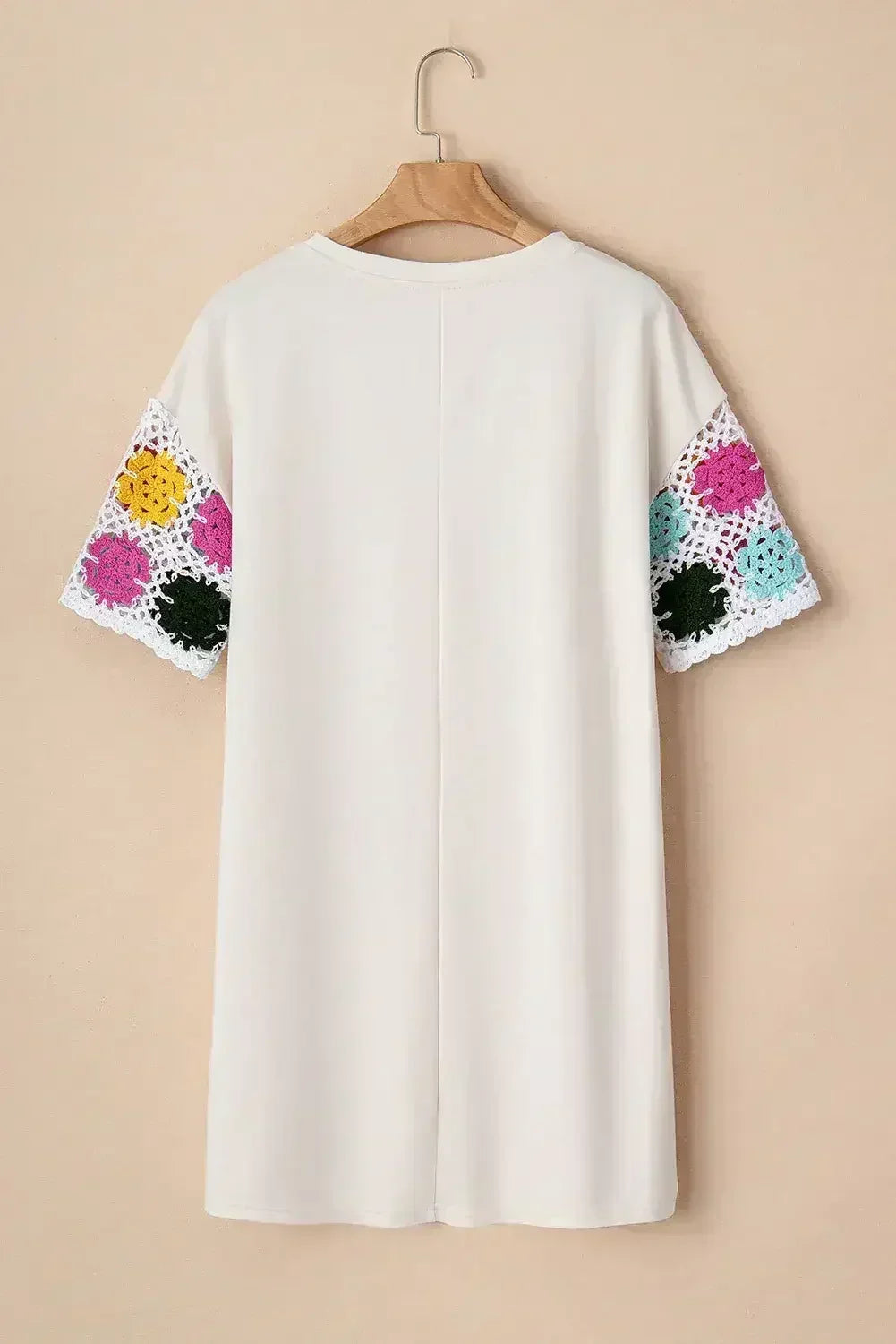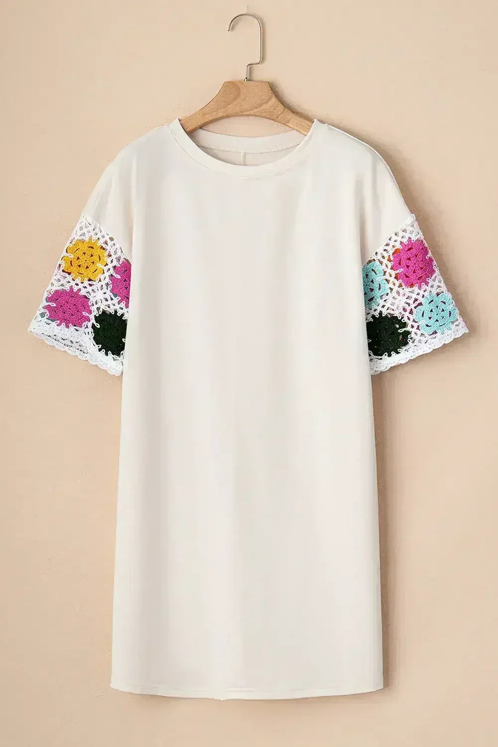 White Floral Crochet Splicing Sleeve T-shirt Dress