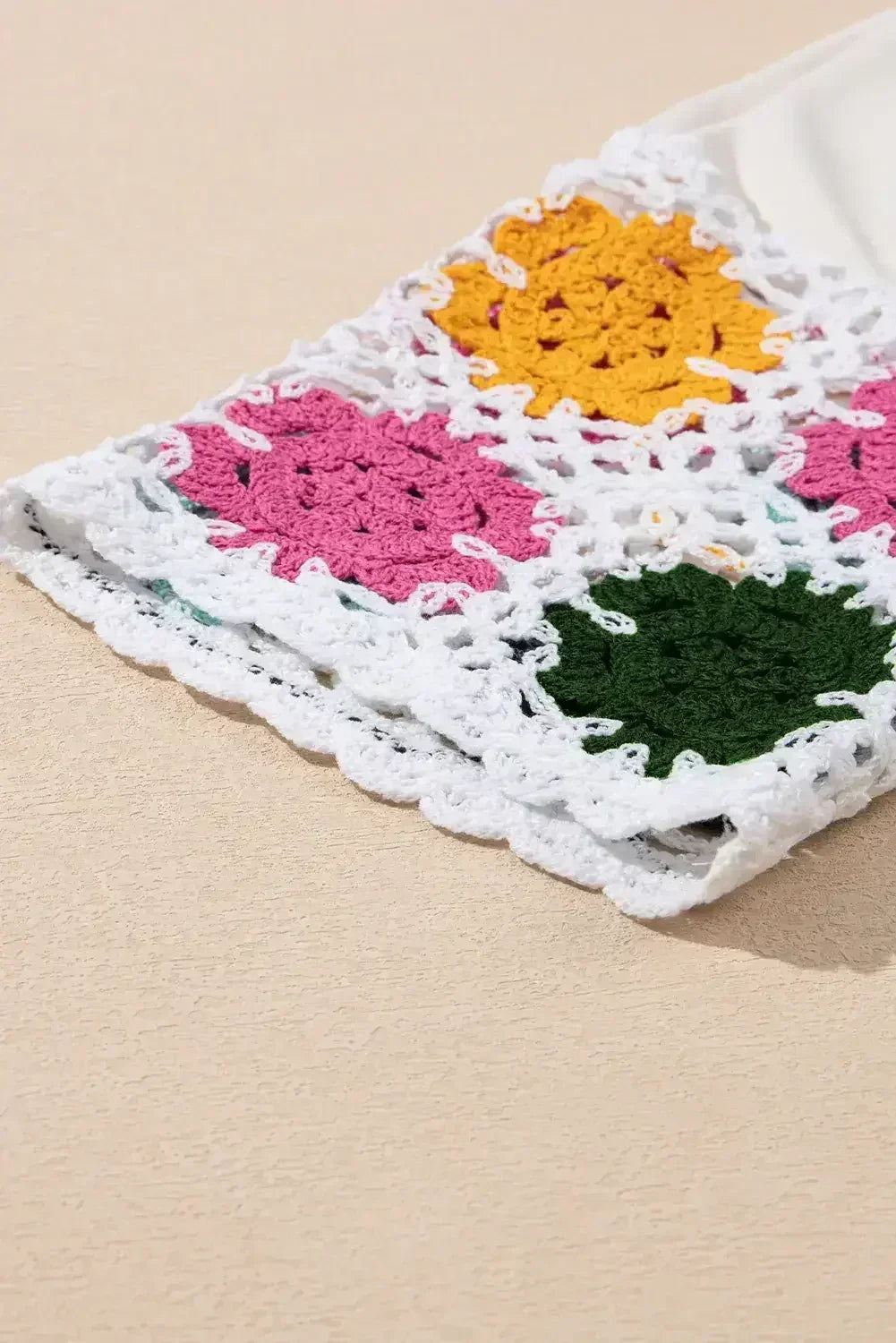 - The dress is a charming and feminine piece that combines floral patterns with delicate crochet details, creating a beautiful and romantic look.