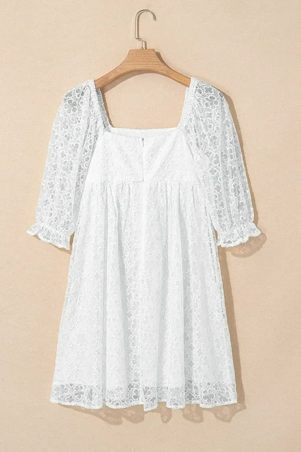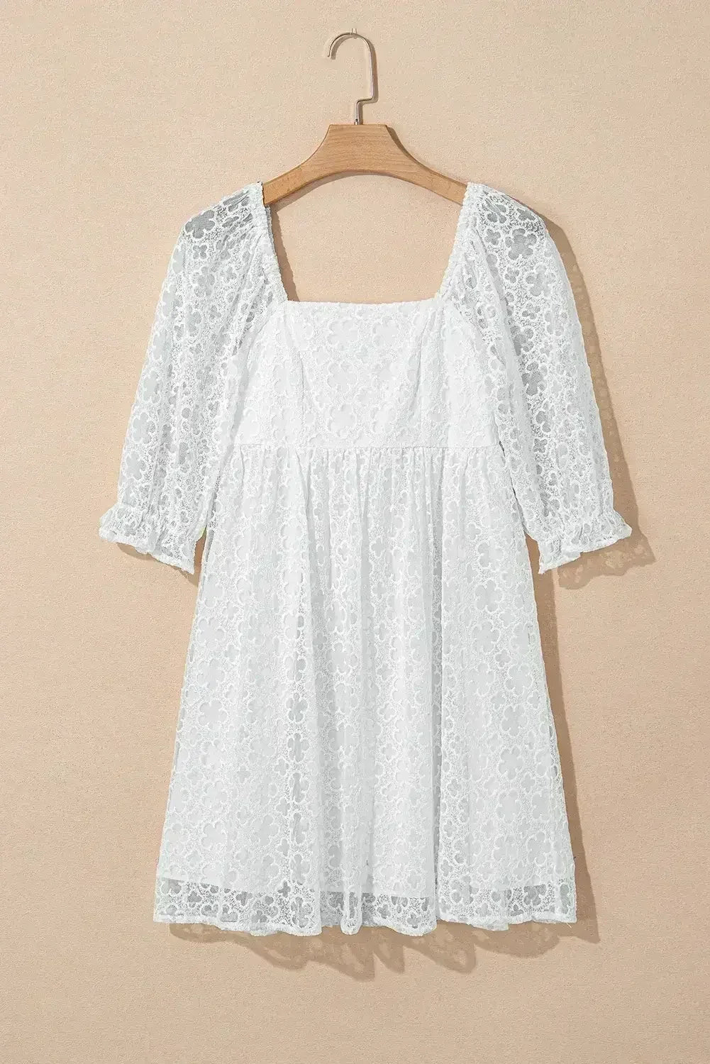 White Floral Lace Puff Sleeve Empire Waist Mini Dress