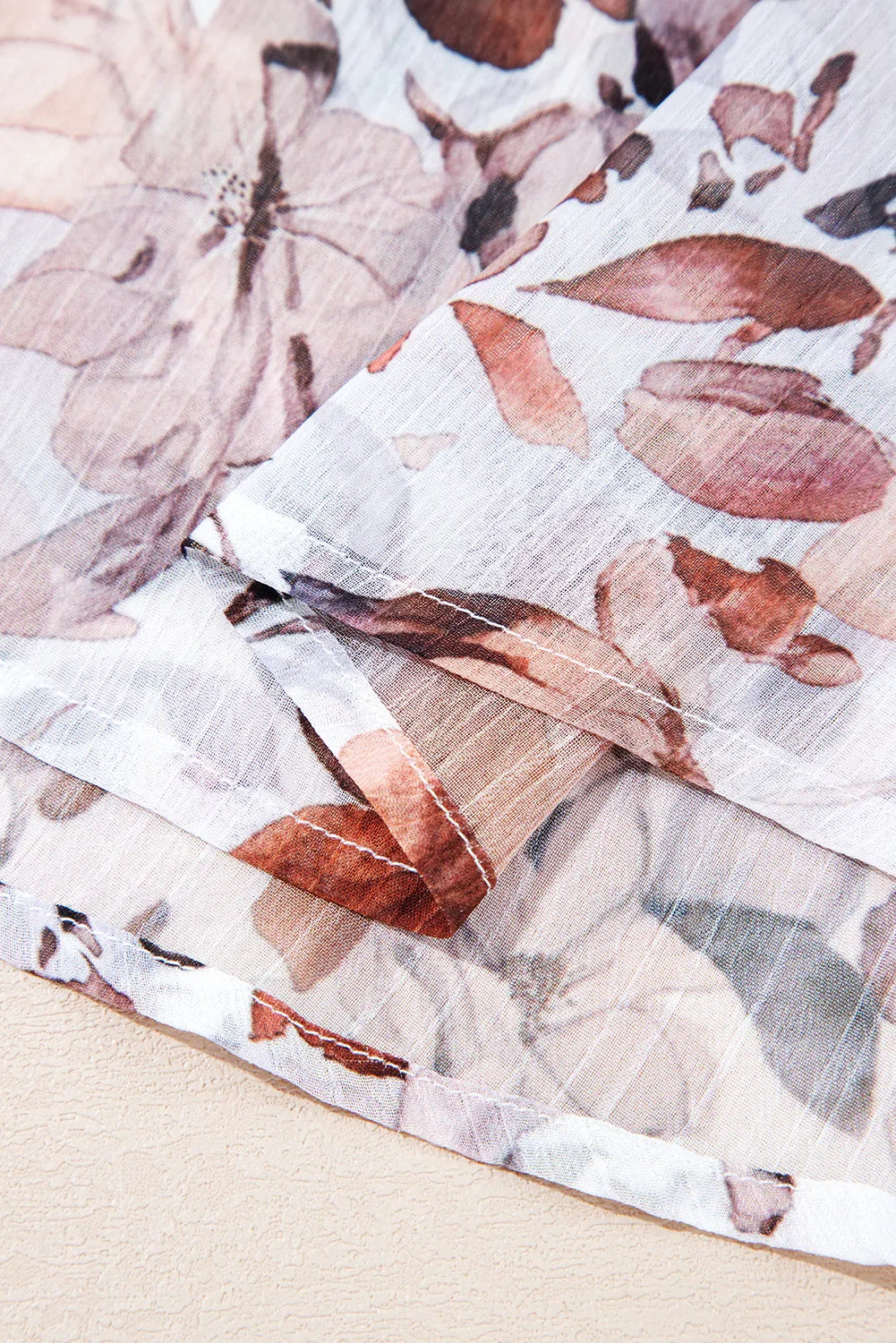 White Floral Print Sweetheart Neck High Waist Mini Dress