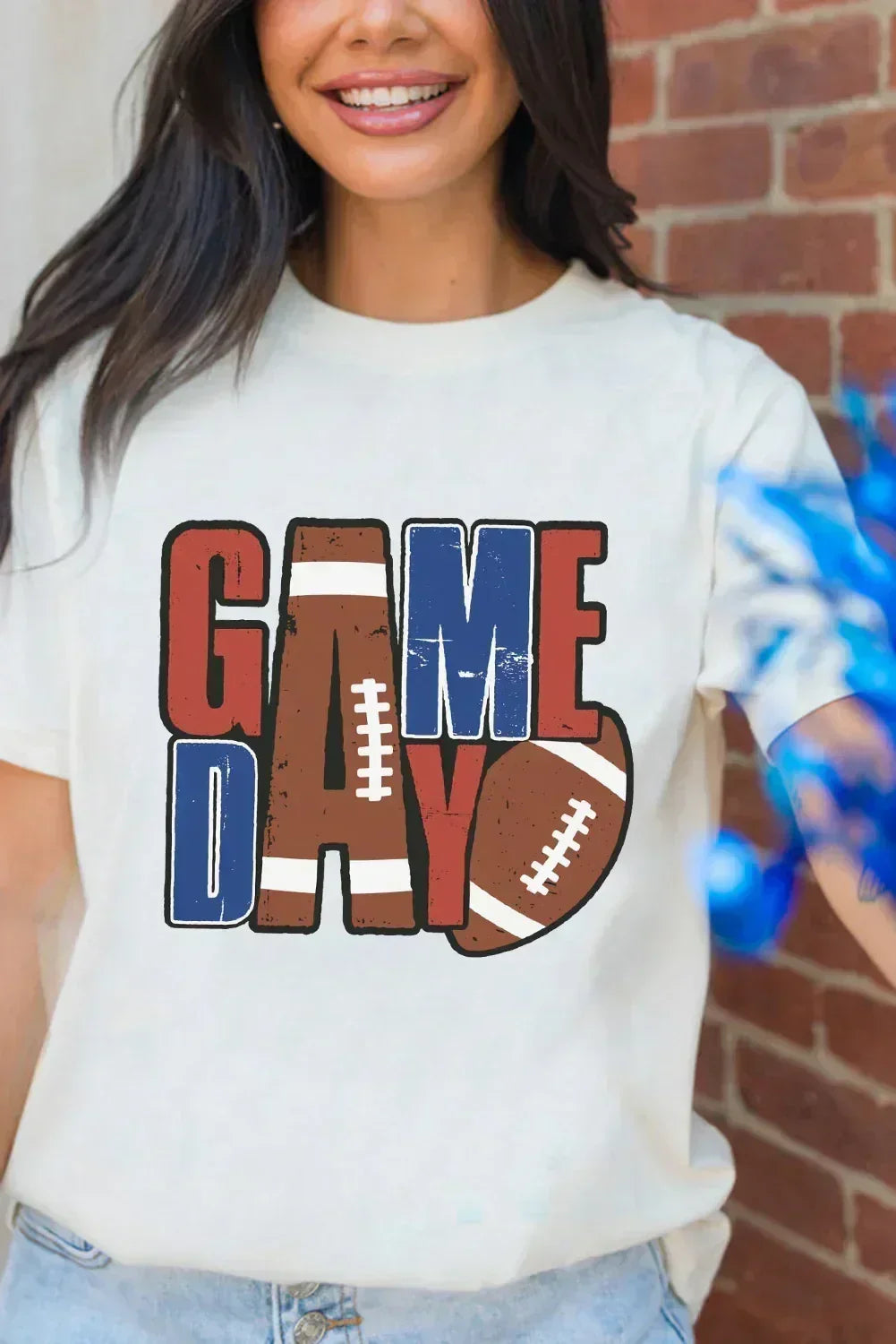 Channel your team spirit with this crisp white football-themed tee, featuring a bold letter graphic that shouts athletic pride. The breathable cotton-polyester blend and relaxed fit make it perfect for game days, practice, or casual wear.