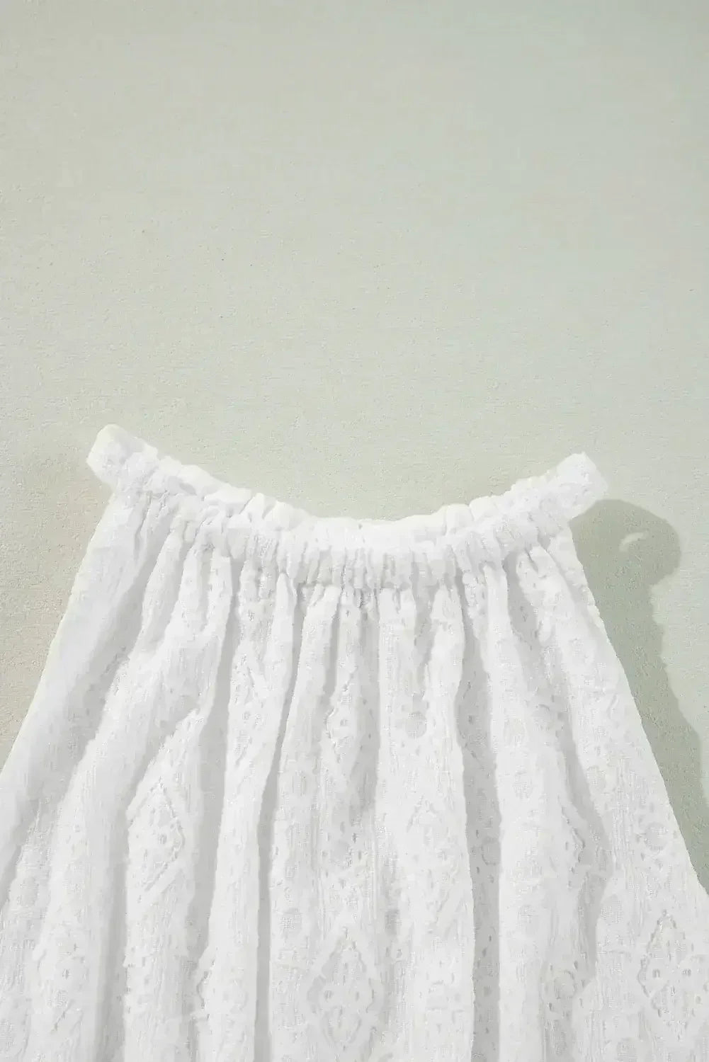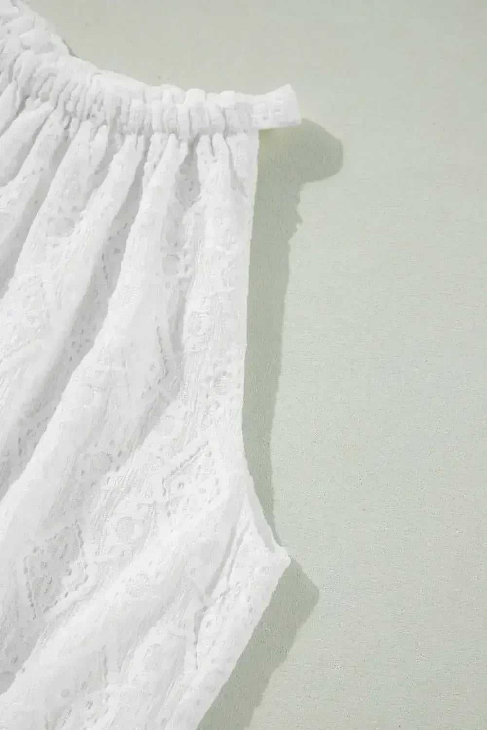 White Lace Sleeveless Knot Hollow Out Back Tied Waist Mini Dress