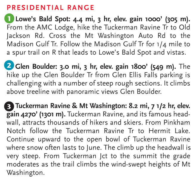 This richly illustrated map covers the highest and most popular peaks in the White Mountains of New Hampshire.