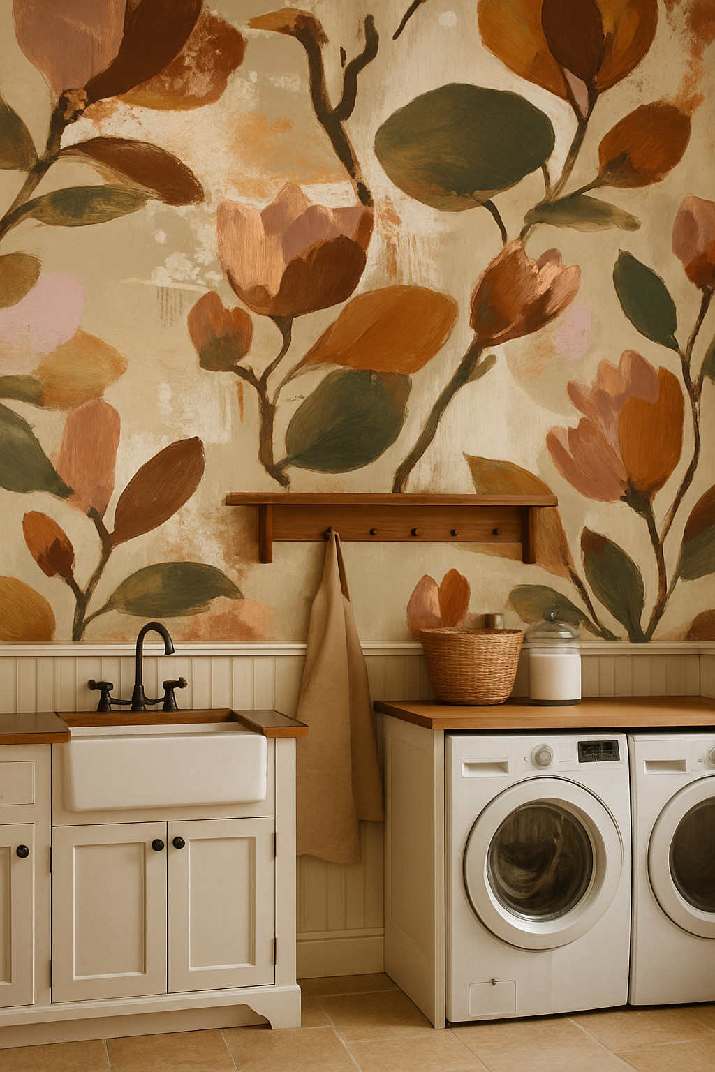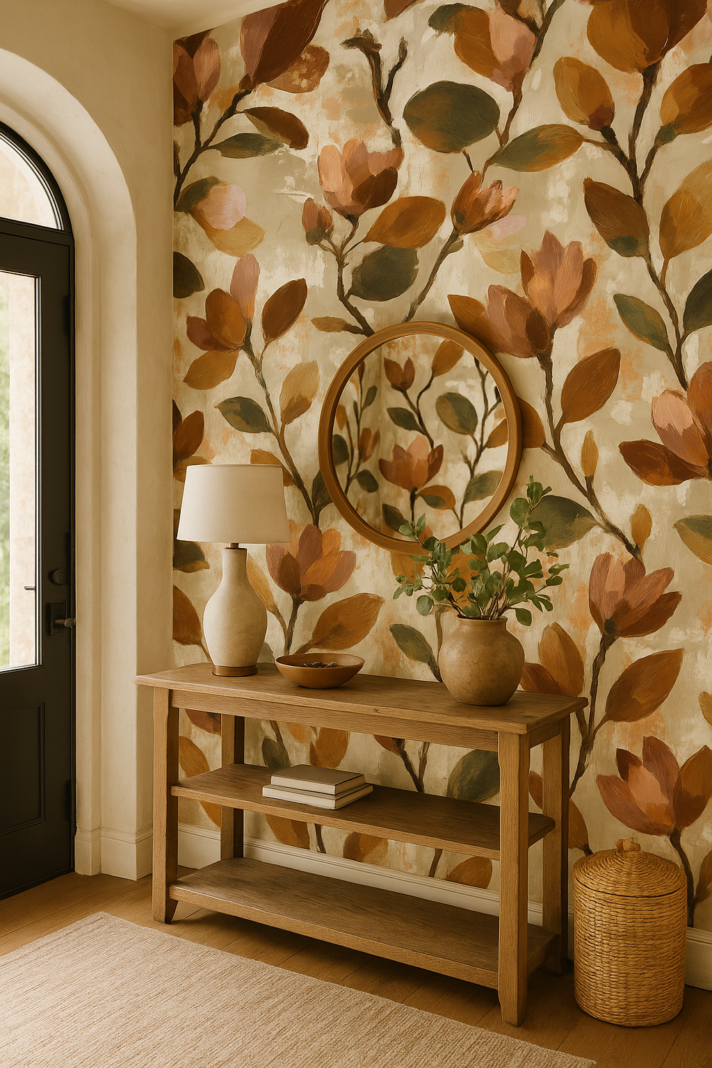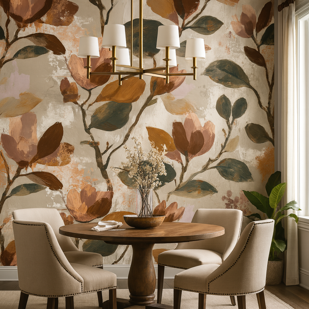 Oversized, painterly florals spill across "Wild Bloom" in layers of dusty rose, berry, lavender, and smoky olive. This mural-like wallpaper captures a garden in mid-motion—brushed petals, blooming silhouettes, and translucent leaves flowing like watercolor across your wall. It’s lush, romantic, and perfect for bold bedrooms, dining rooms, or maximalist lounges.