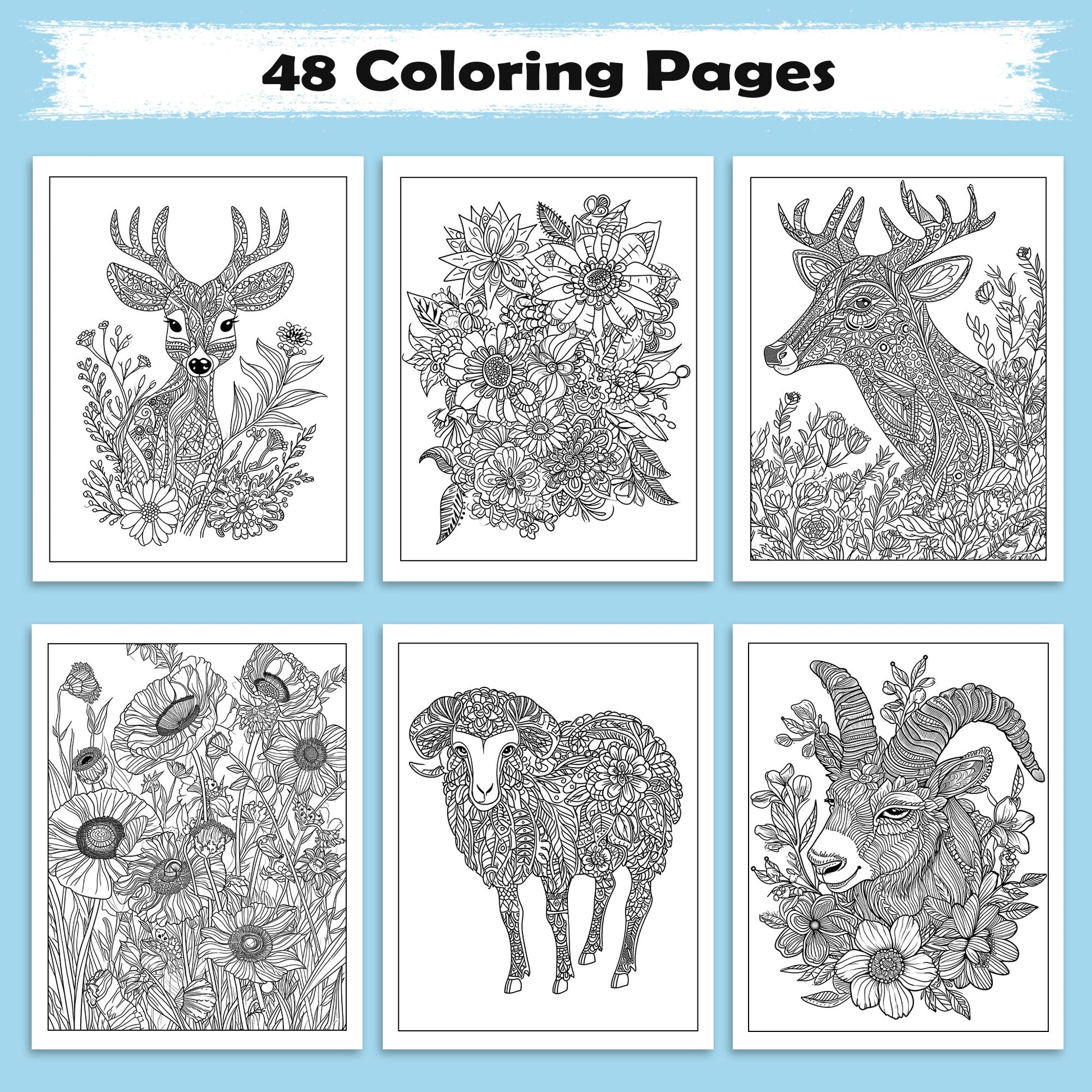 Wild Blooms Coloring Pages – 48 Pages – Intricate Flowers, Animals, Nature Patterns – For Adults