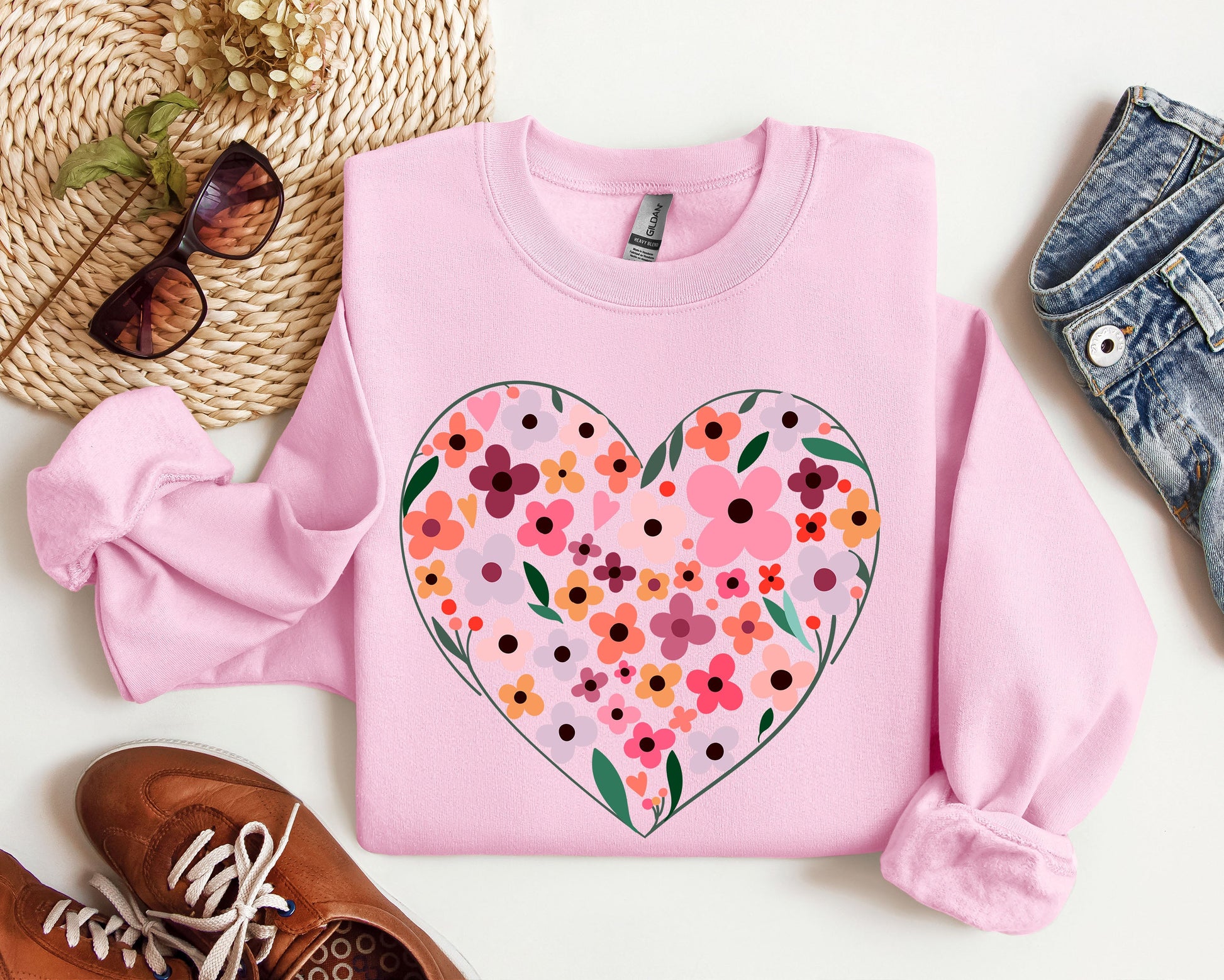Wildflowers Heart Sweatshirt, Vintage Valentine's Day Sweatshirt