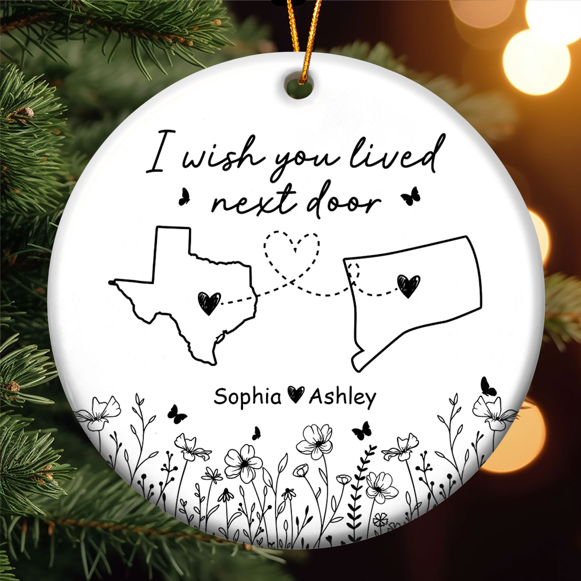 Wish You Lived Next Door - Personalized Circle Ceramic Ornament - Christmas Gift for Long Distance Family, Friendship Gift