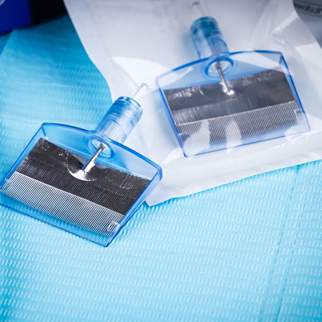 There are four special elastics hold on a rebound that lighten the pressure of the needle bar, working silence. The frame is made of PC polycarbonate, Polycarbonate is colorless, transparent, heat resistant, impact resistant, flame retardant, BI grade, and has good mechanical properties at normal use temperatures. From the outer needle shell to the needle thread, and even every part, we have carried out layer screening and testing to make a needle run smoothly, save more ink, fast color, low skin loss, and every detail is critical. The needles wire is fixed by fogging and discharging needles, plastic sets, and precise models, which greatly reduces the welding process, thus avoiding the chemical pickling process and ensuring the safety and hygiene of each needle wire. The design of the ink guide groove is added under the needles nozzle to increase ink storage. The protruding part becomes the track when the needles are out. With the arc clamp limiter on both sides of the needles nozzle, the friction coefficient is reduced, the stability of the needle is increased and the smooth needle and ink flow are guaranteed. The design of secant needle is similar to each other. The stabilizing device of cross needle can make the needles run steadily and increase the ink storage at the same time. The radian of the front section of the arc-shaped needle nozzle is the same as that of the needle wire. Grinding design of the front end of the needle nozzle to increase ink storage and control color spillover.