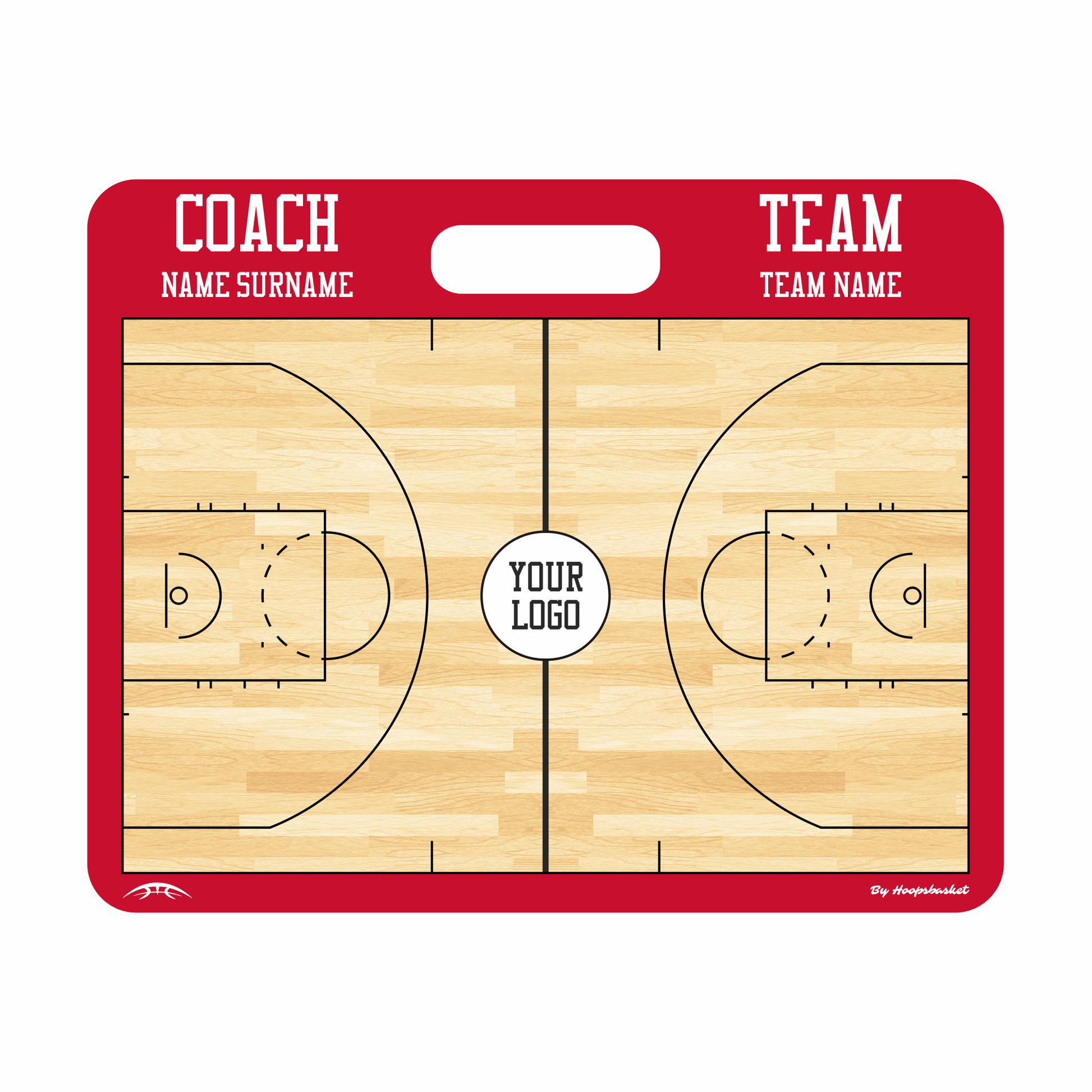 Demonstrate both full court and more detailed half court plays to your team during pre-game and timeouts with the most durable and versatile dry erasable board on the market. Our lightweight custom basketball coaching board has the highest of standards.