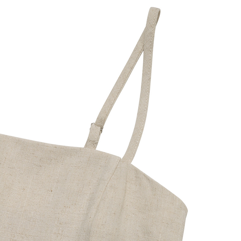 Women Casual Simple Linen Jumpsuit Solid Color Strap Tube Top Romper