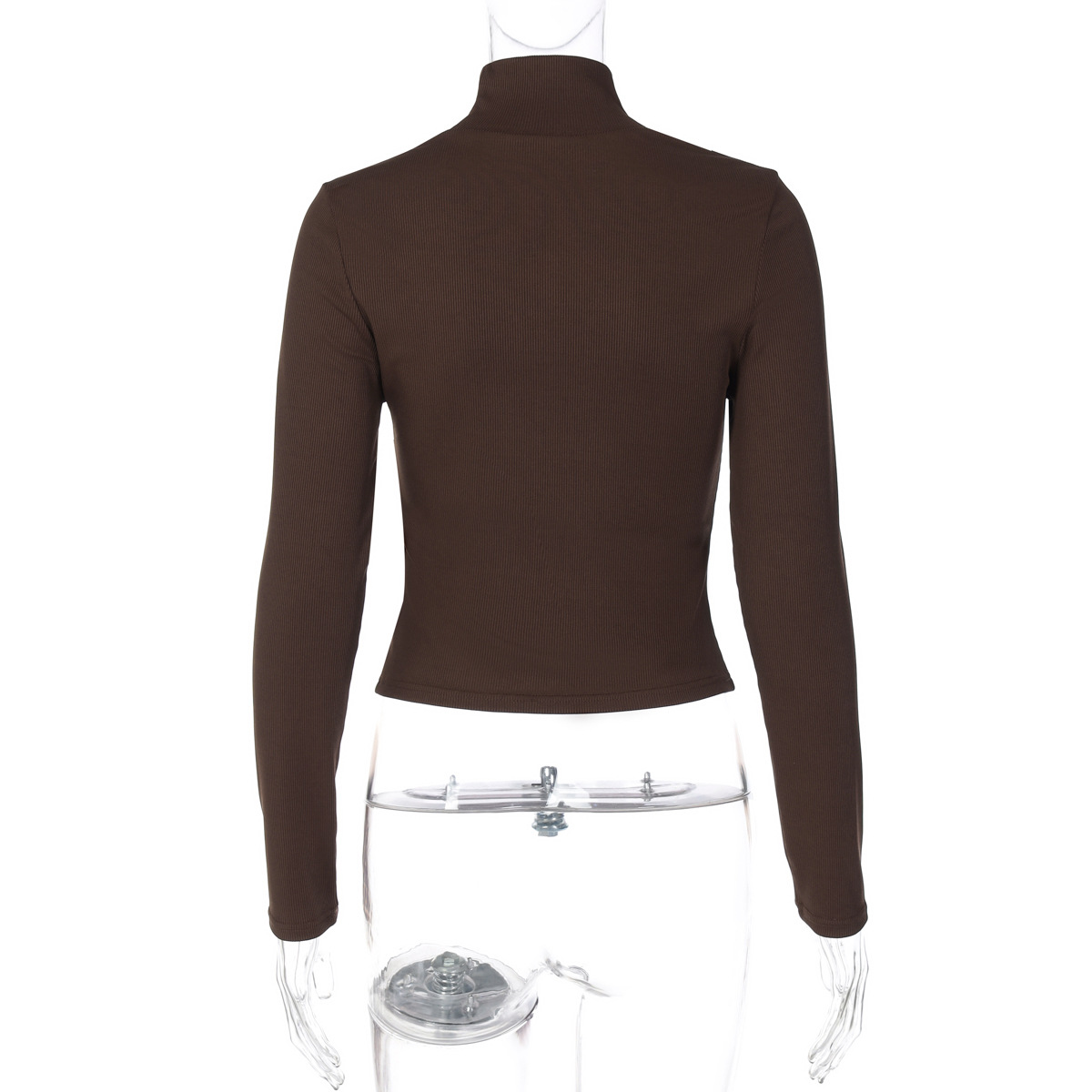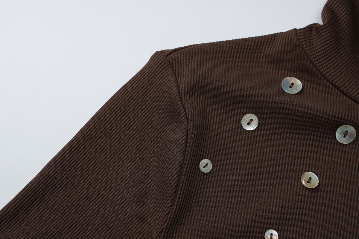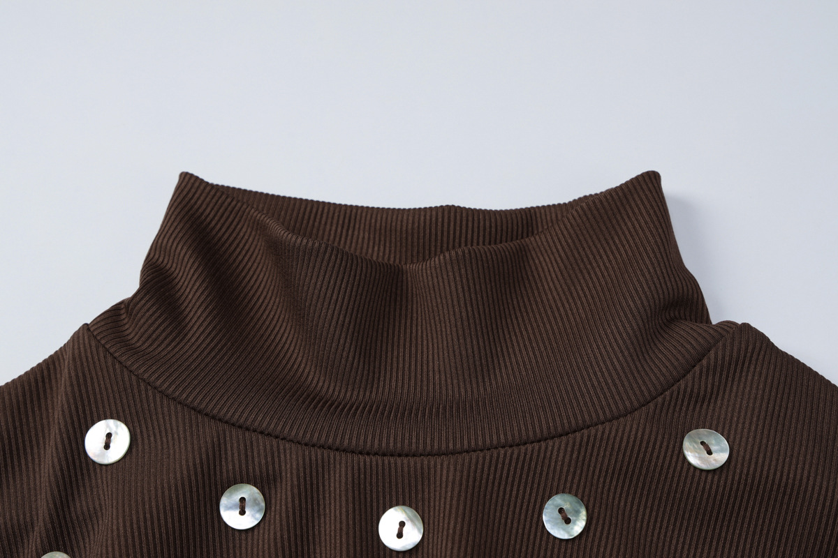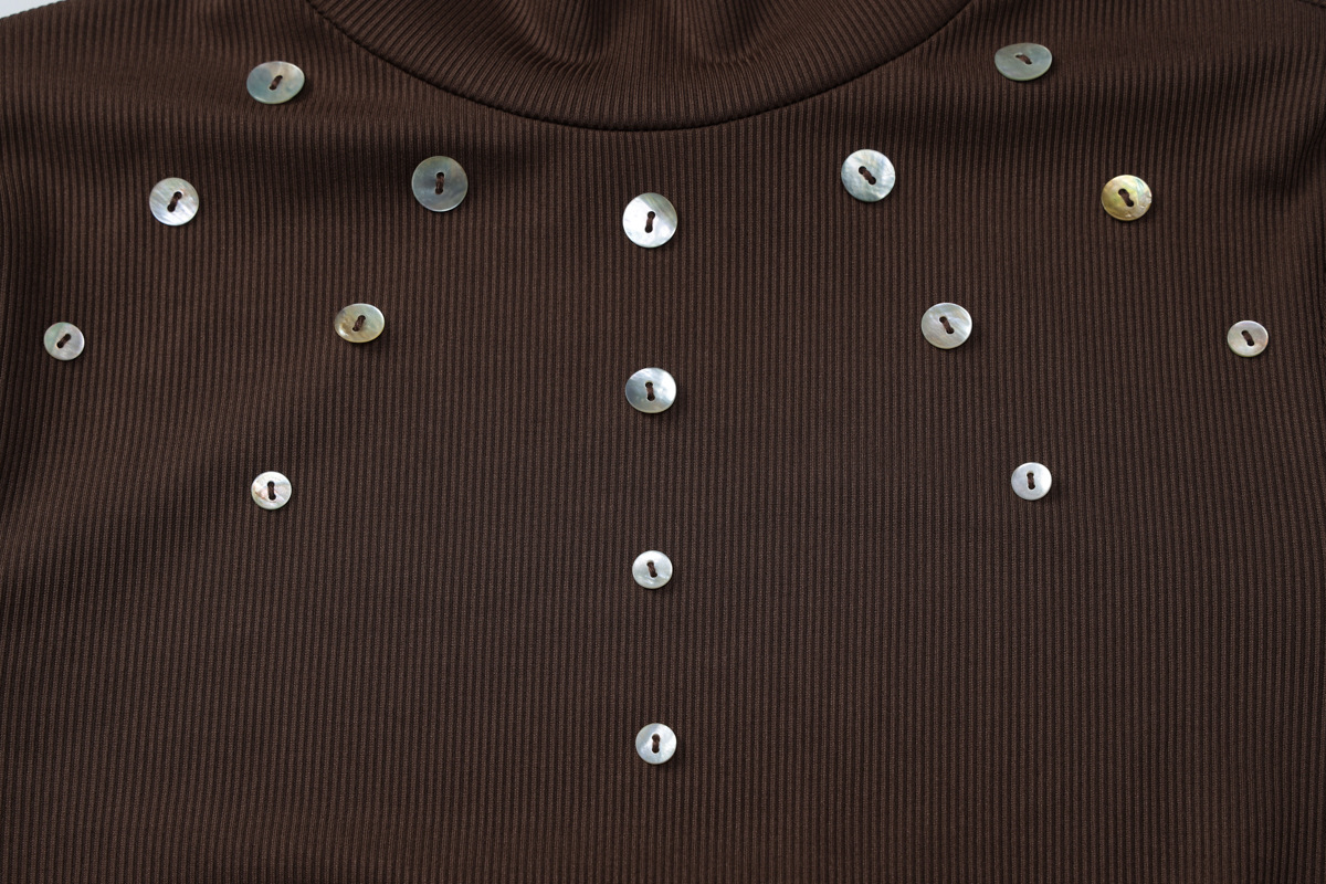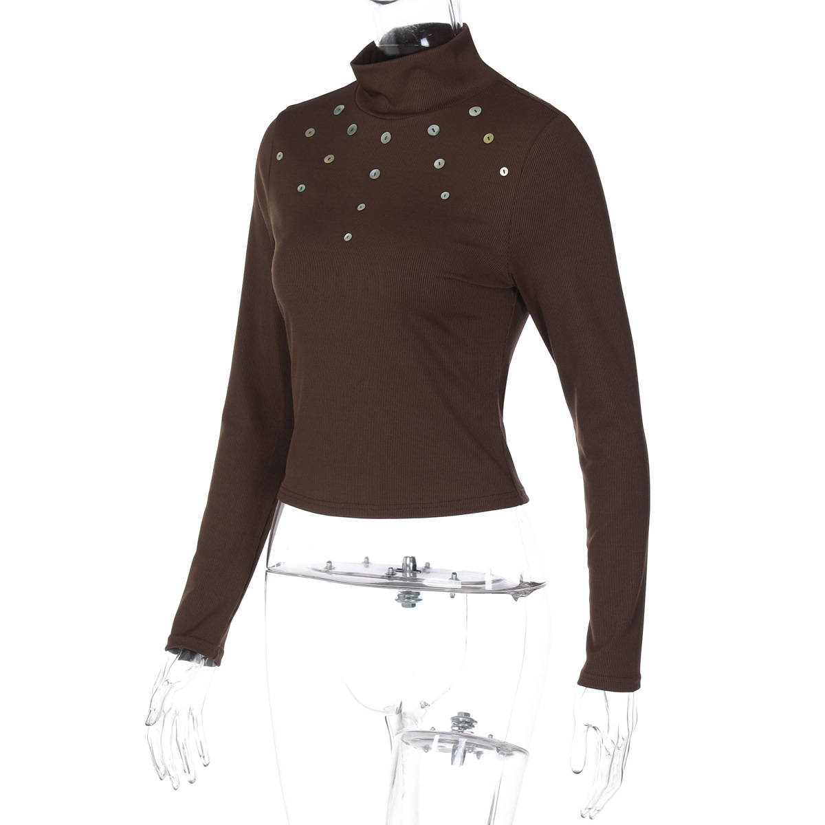 Women Clothing Autumn Personality Slim Fit Shell Button Long Sleeved Top
