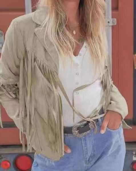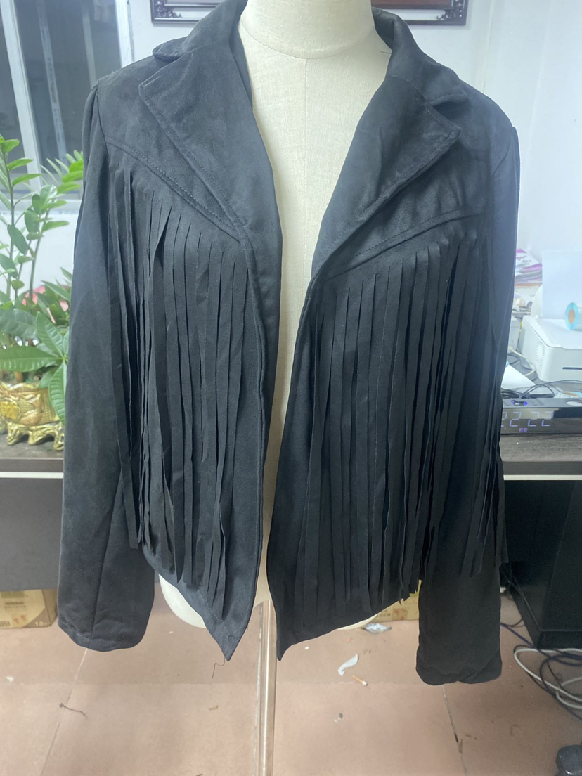 Women Clothing Autumn Slim Top Long Sleeve Printed Tassel Coat Women