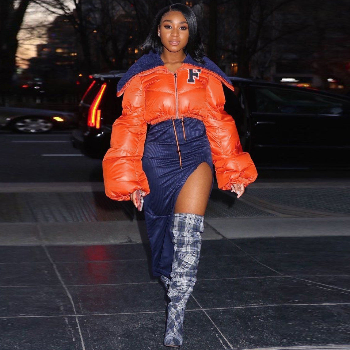 XL / Orange Blue Fur Collar (Glossy Fabric)F00143102-805