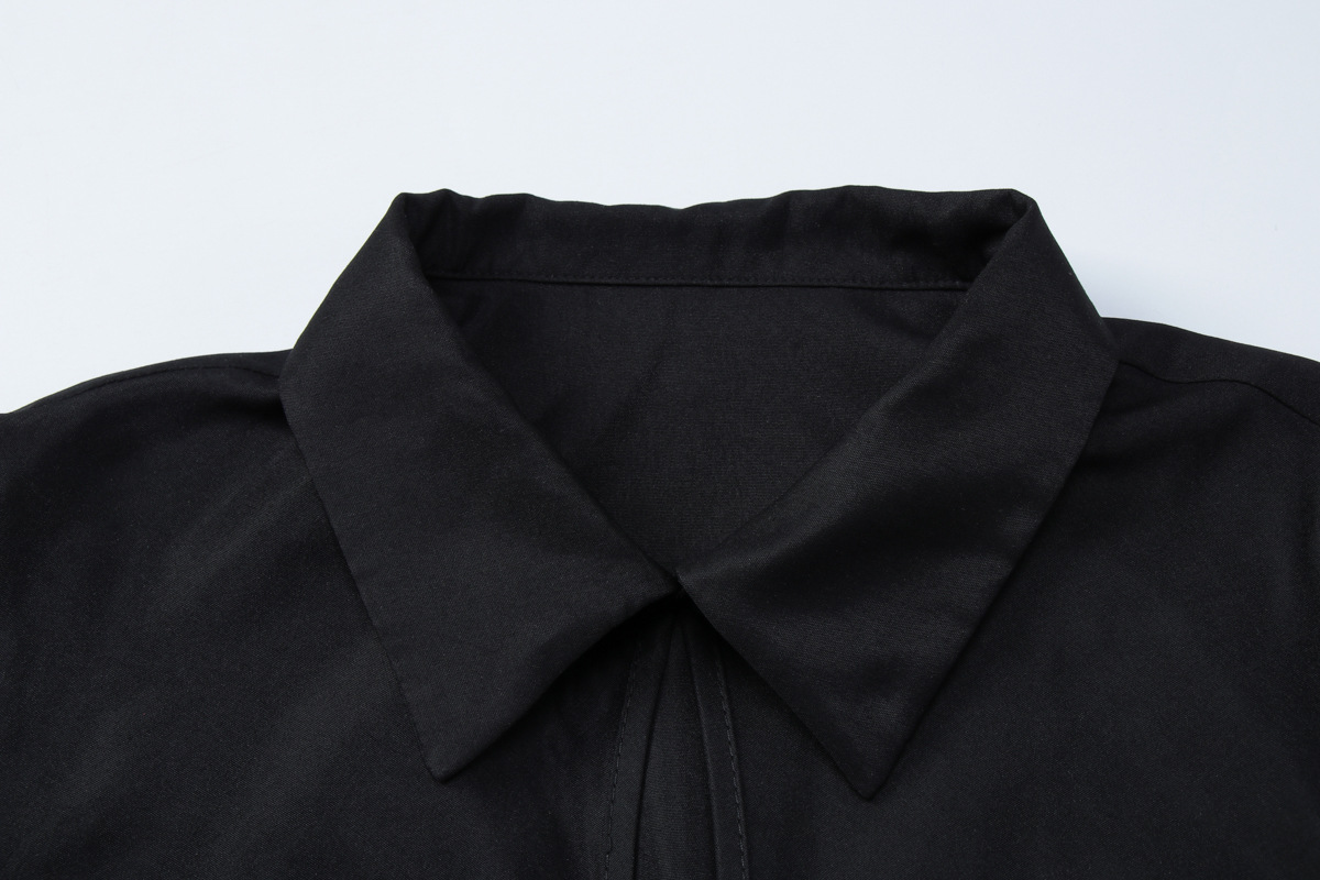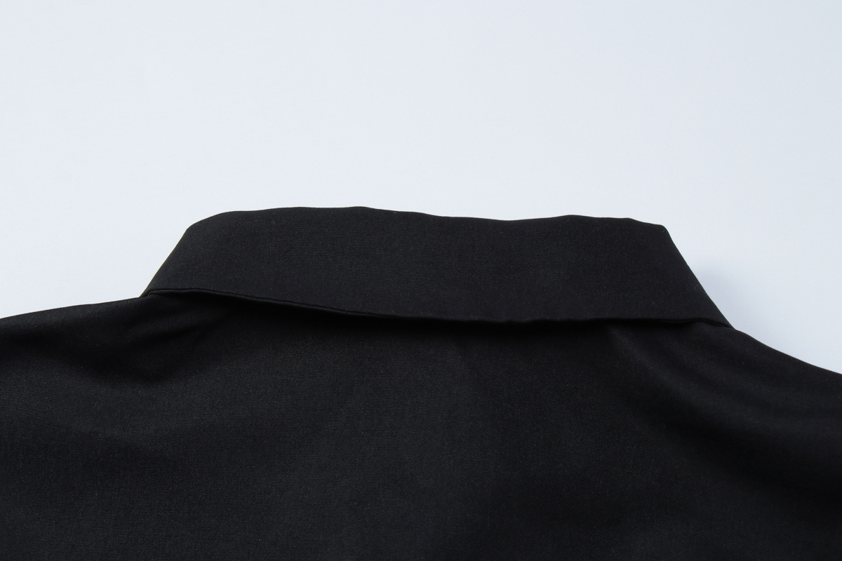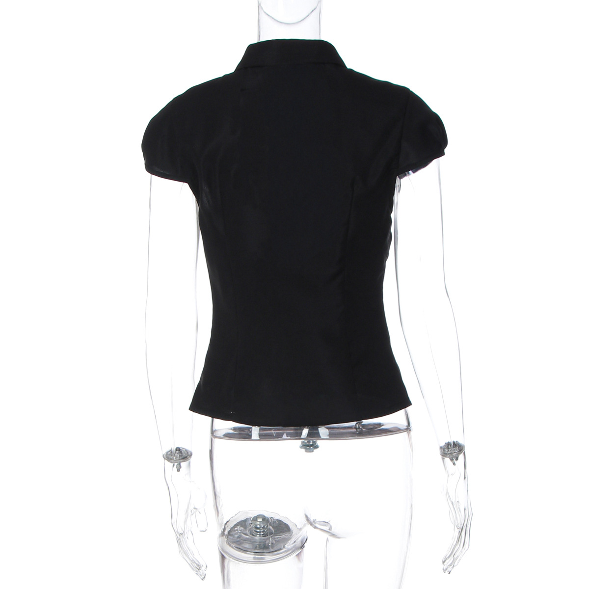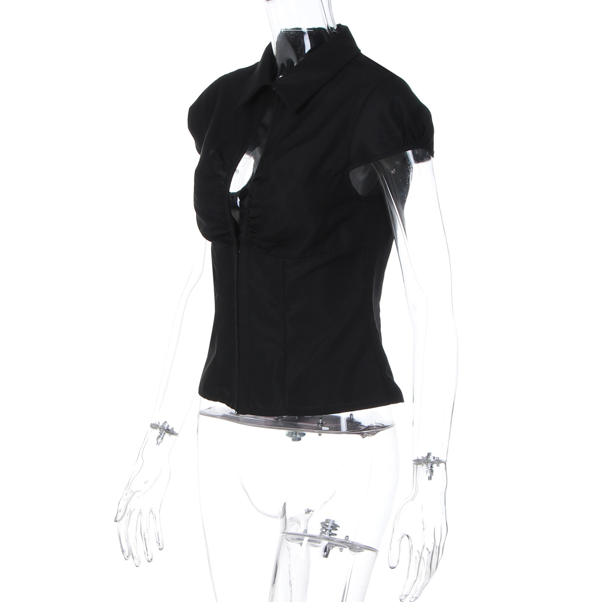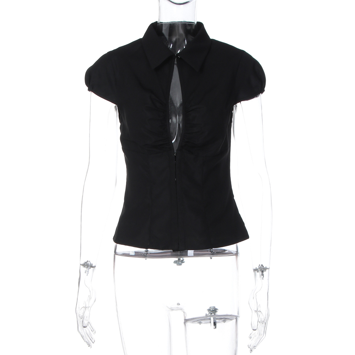 Women Clothing Autumn Winter Sexy Cardigan Breasted Collared Short Sleeve T shirt Top