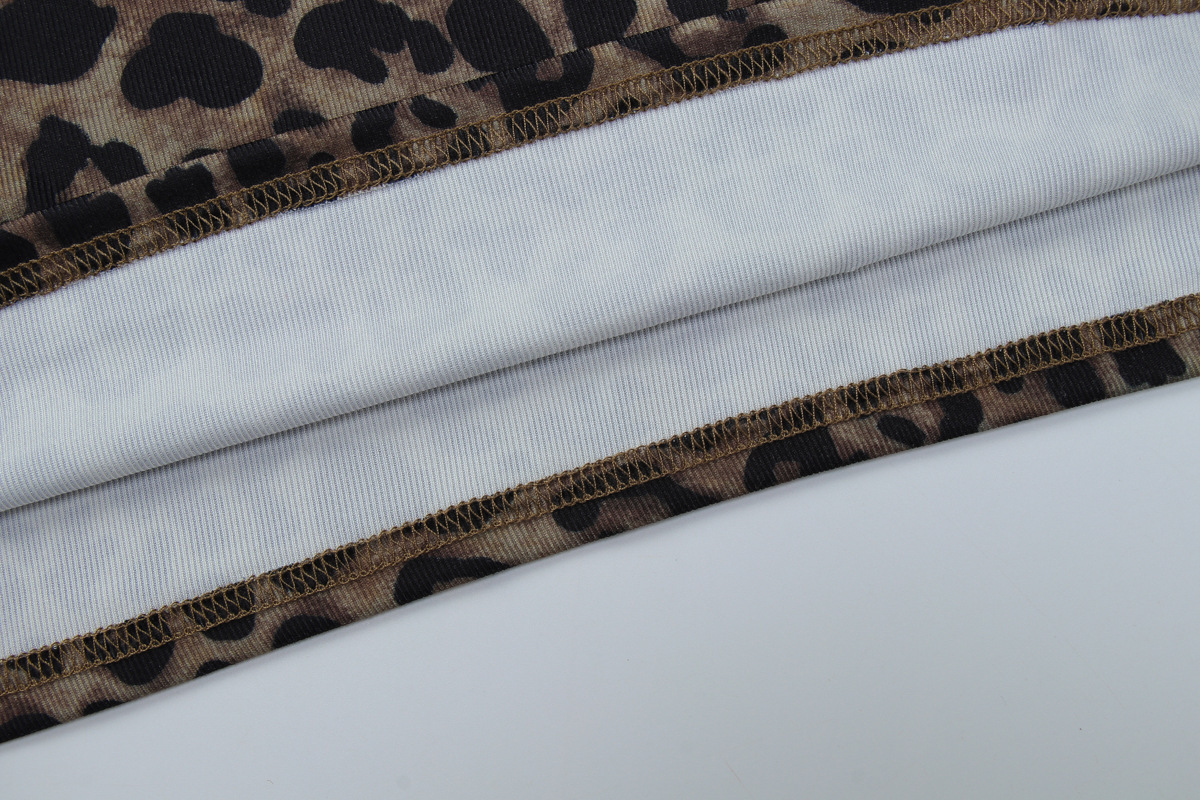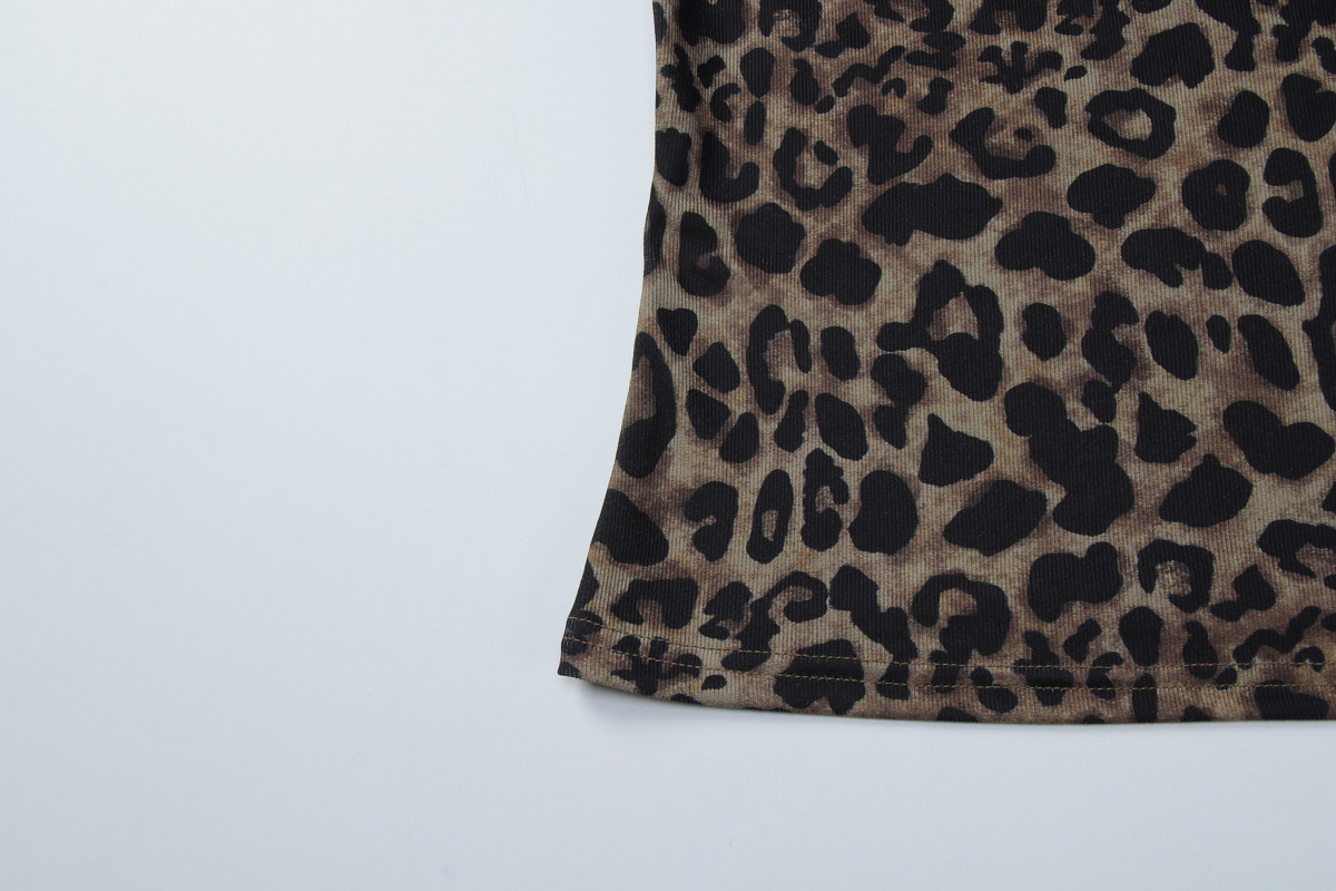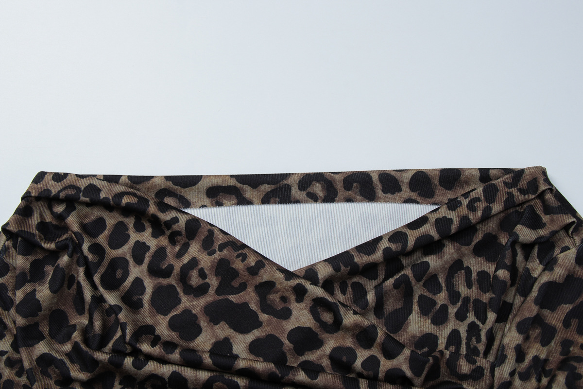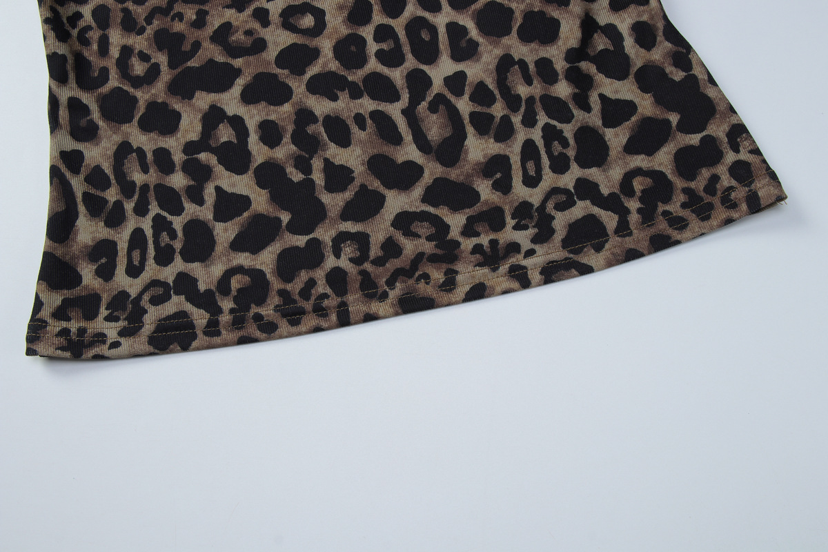 Women Clothing Fall Sexy off Shoulder Leopard Print Slim Fit Sexy Long Sleeve Top