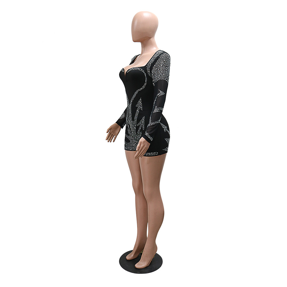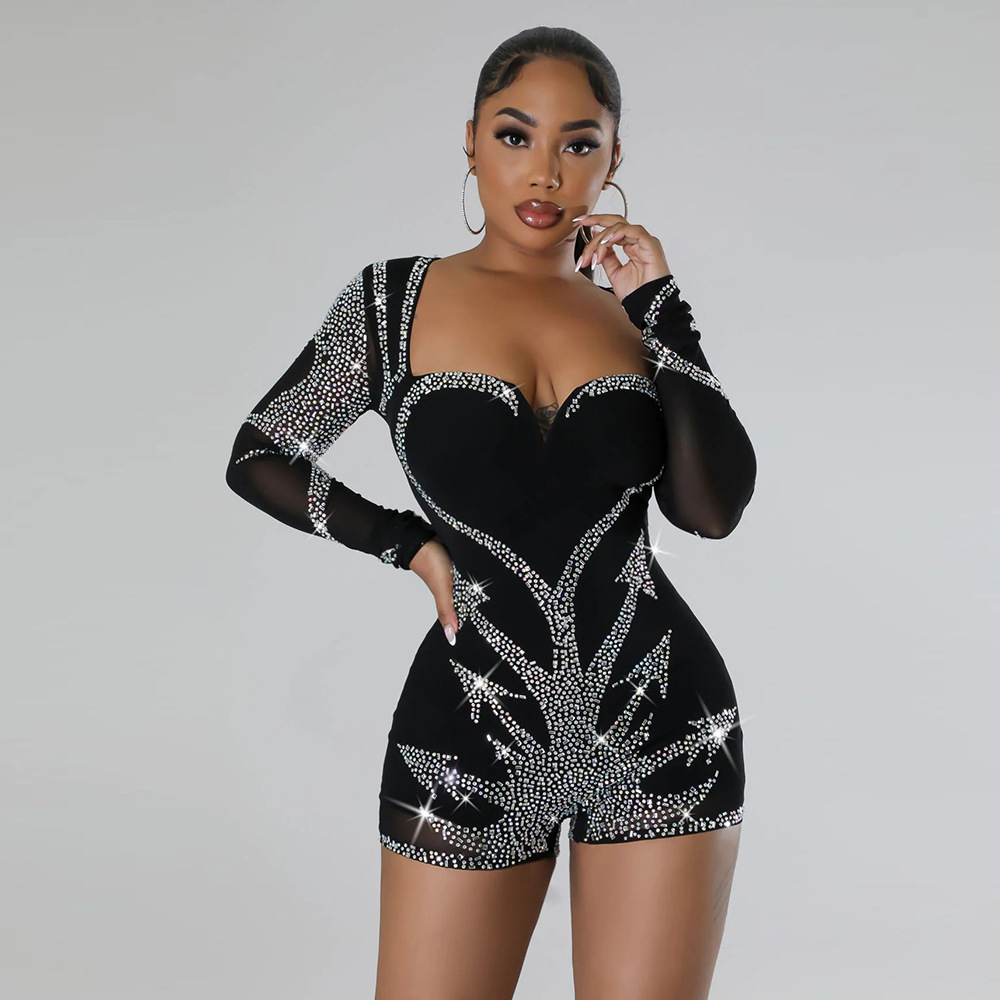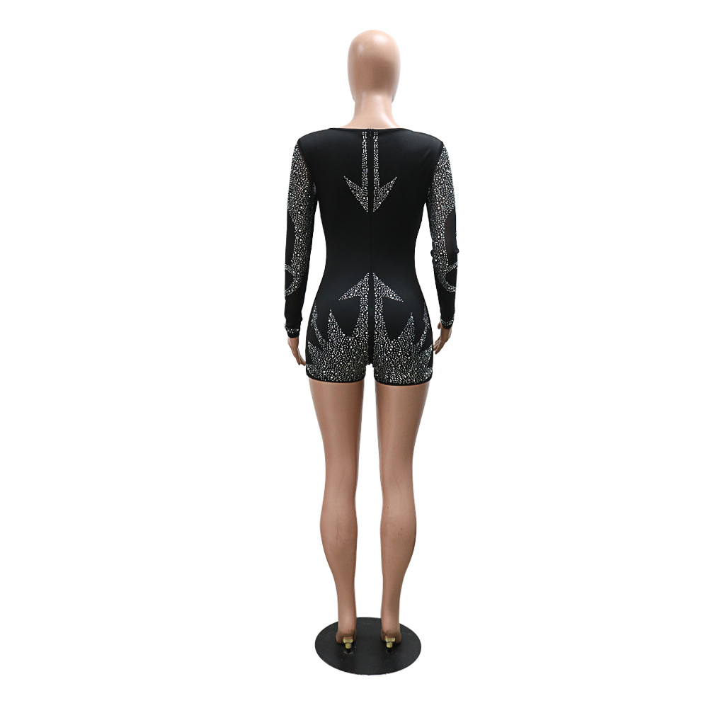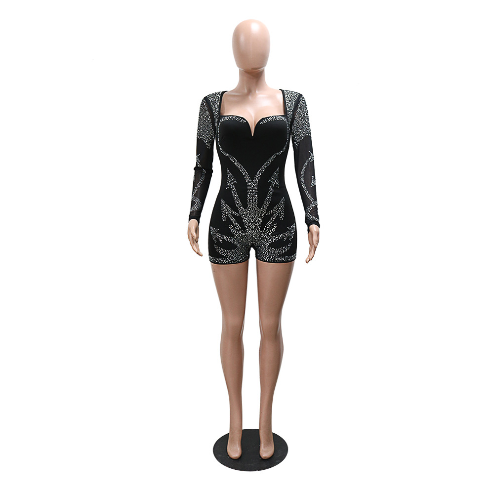 Women Clothing Long Sleeve Drilling Romper Slim Fit