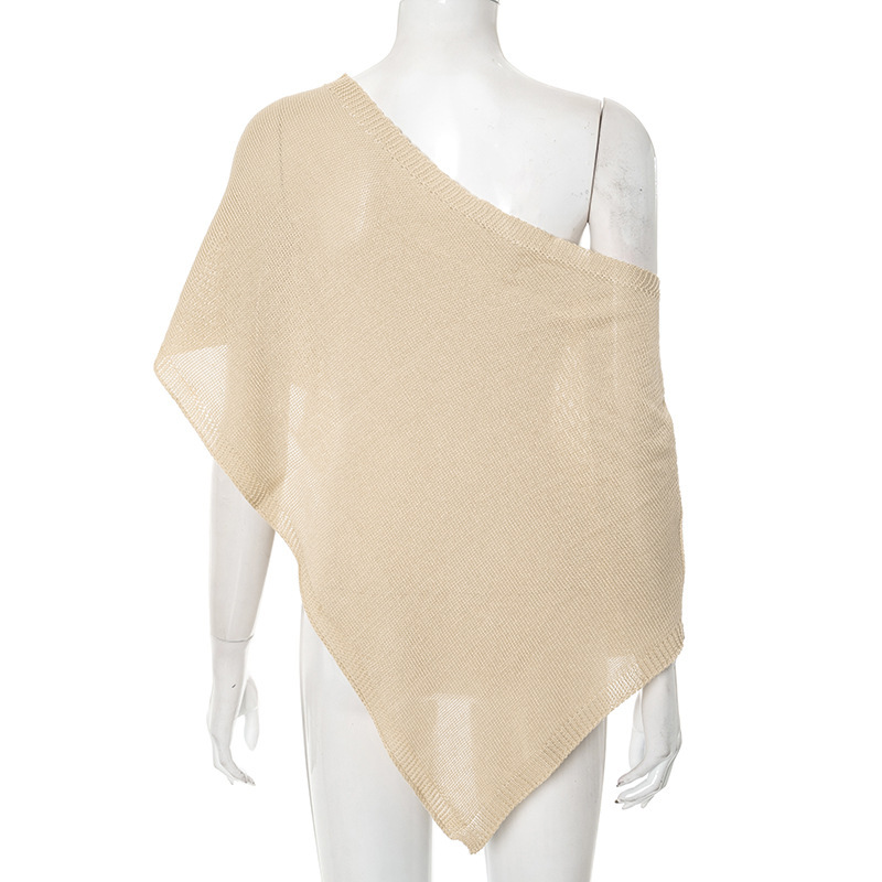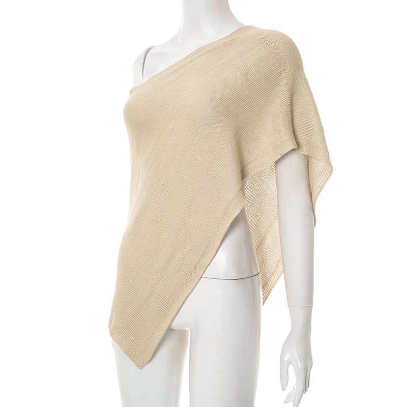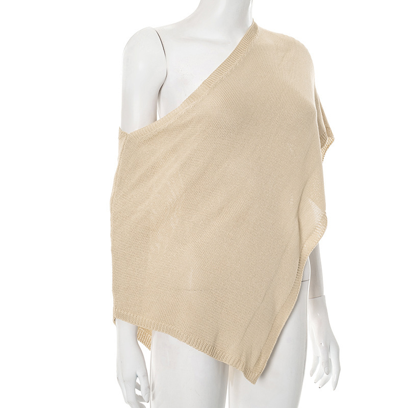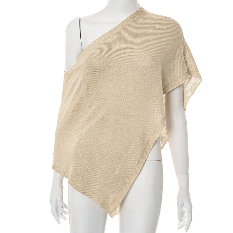 Women Clothing Summer Sexy Elegant Woolen Slant Shoulder Loose Top