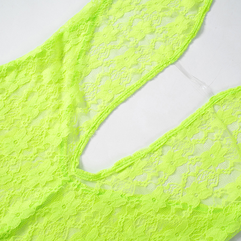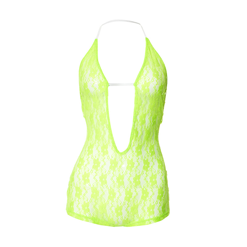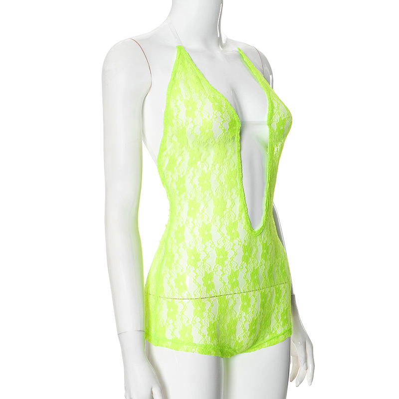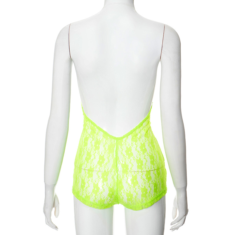 Women Clothing Summer Sexy Lace Hollow Out Cutout out See through Halter Bare Back Romper