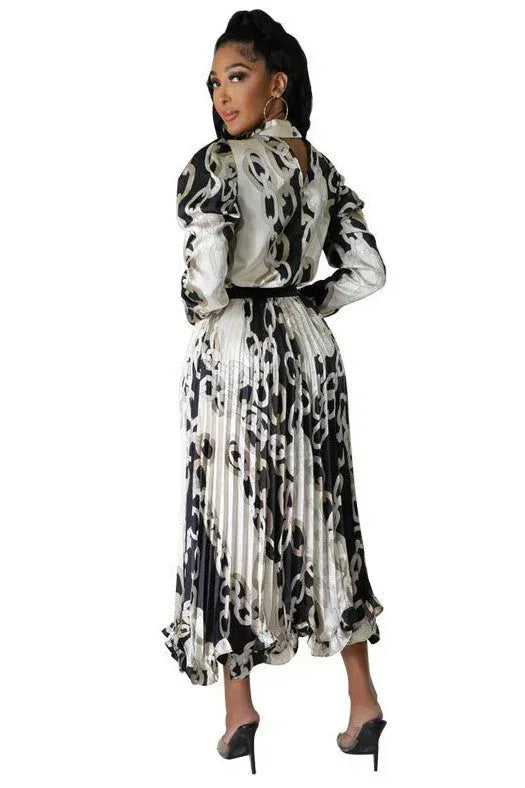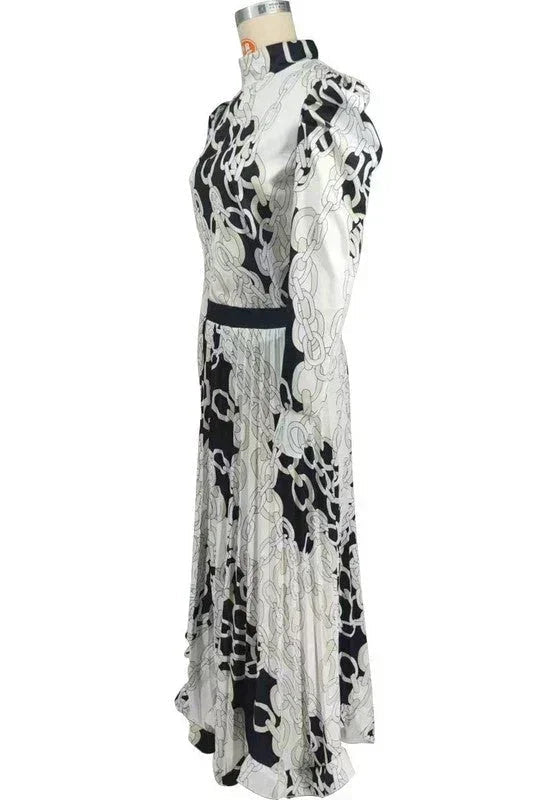 Sexy fashion dress, round neckline, long sleeves, pleated style skirt S: Bust 37.4 in, Waist 34.6 in, Length 38 in M: Bust 39 in, Waist 36 in, Length 38.5 in L: Bust 41.3 in, Waist 38.7 in, Length 39 in XL: Bust 43.7 in, Waist 41 in, length 39.4 in 2XL: Bust 46 in, Waist 43.3 in, Length 39.7 in