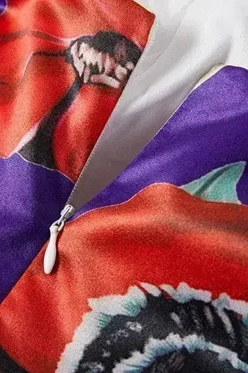 Details-floral multi S: Bust 33 in, Waist 26.7 in, Length 53 in M: Bust 35 in, Waist 28 in, Length 53 in L: Bust 36 in, Waist 30 In, Length 53 in XL: Bust 38 in, Waist 31.5 in, Length 54 in 2XL: Bust 39 in, Waist 33 in, Length 54 in Model 5'7'' Bust 31 Waist 23 Hips 34 wearing an M