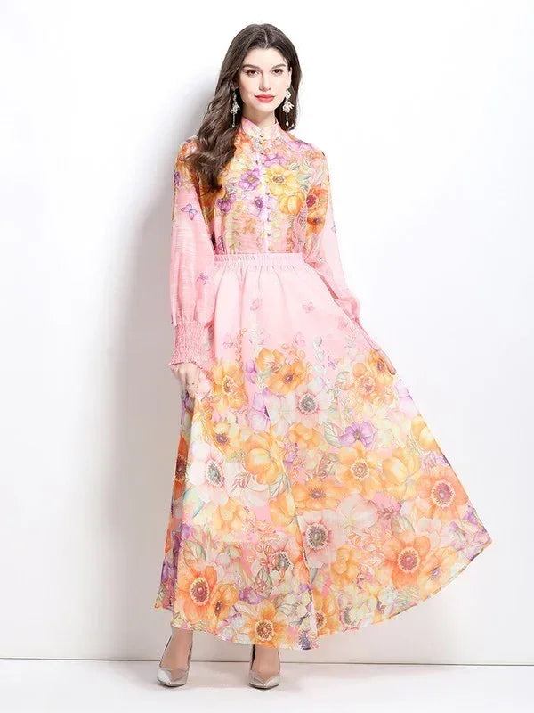 Details include a floral multi print, an off-shoulder neck, fluttering layered ruffles, a sleeveless, elasticized waist, a long maxi dress, and an open side look. inside lined Model 5'7'' Bust 31 Waist 23 Hips 34 wearing a smallS: bust 32 inches, waist 26 inches elasticized, length 53 inchesM: bust 34 inches, waist 27.5 inches elasticized, length 53.5 inchesL: bust 36 inches, waist 29 inches elasticized, length 54 inchesXL: bust 37 inches, waist 31 inches elasticized, length 54.3 inches2XL: bust 39 inches, waist 33 inches elasticized, length 54.7 inches