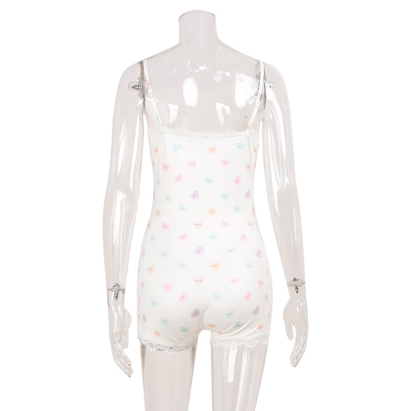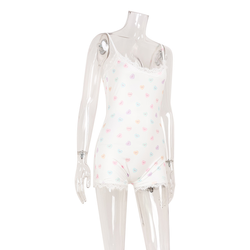 Women Lace Slim Fit Patchwork Strap Floral Jumpsuit Shorts Sweet Women