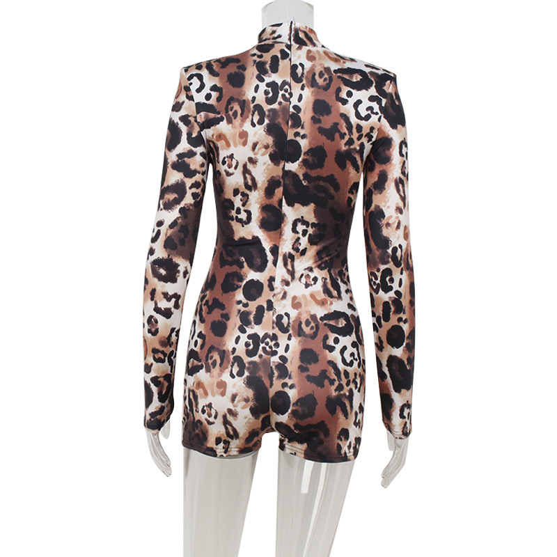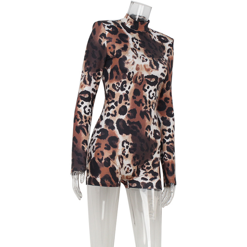Women Long Sleeve Padded Shoulder Sexy Leopard Print Slim Fit Bodysuit Women