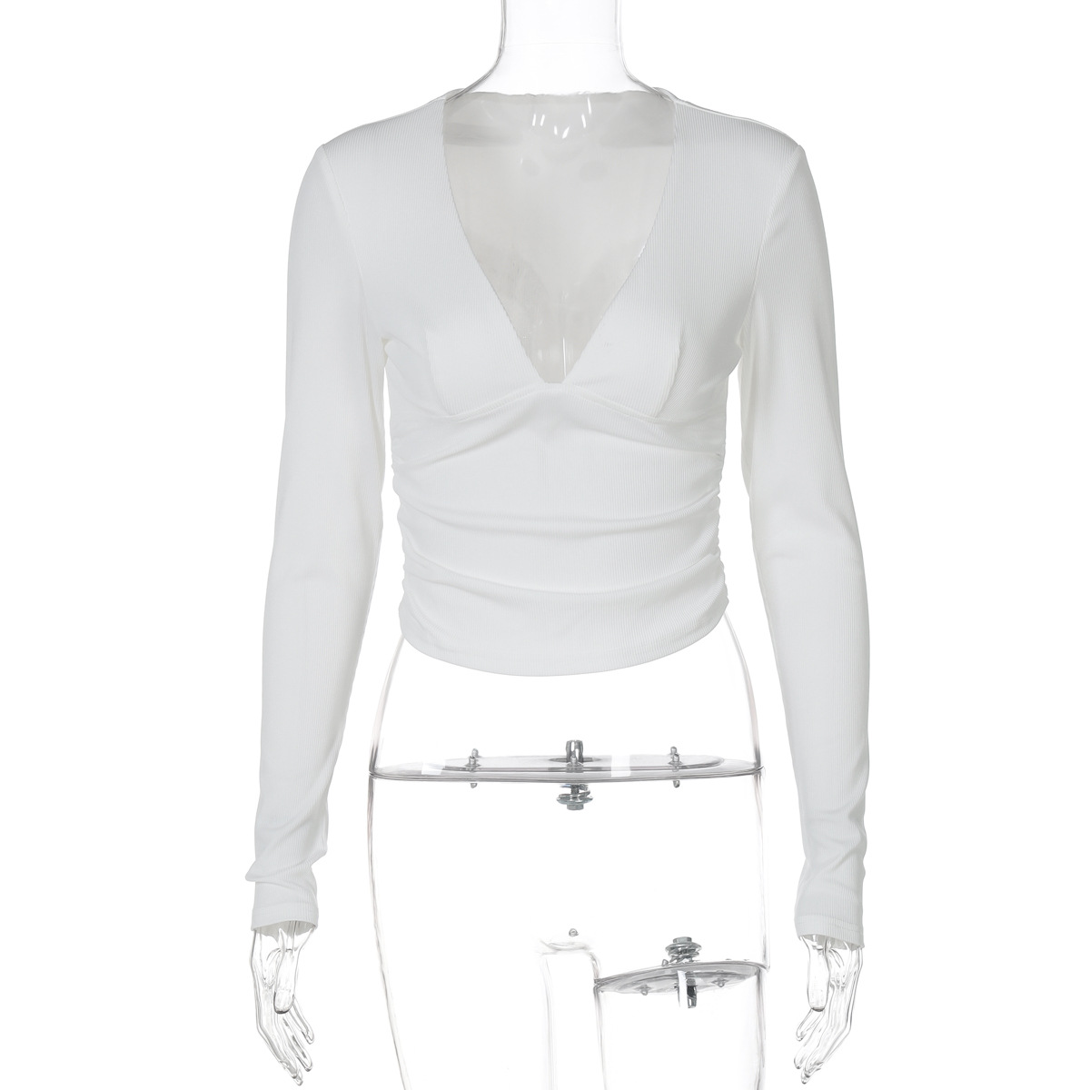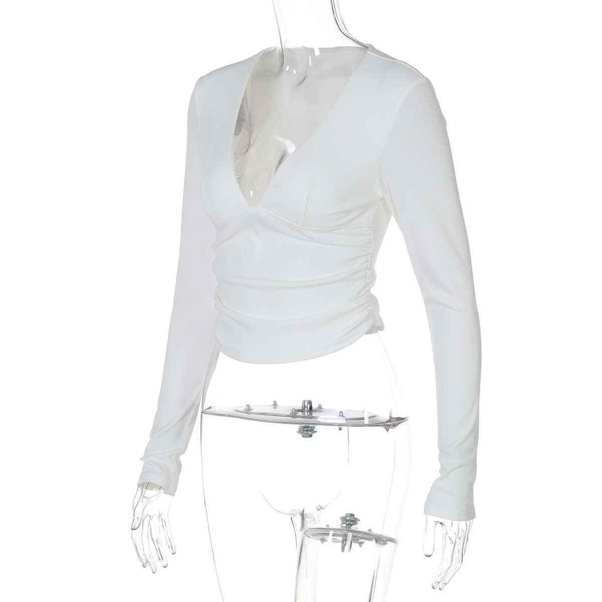 Women Long Sleeved V neck T shirt Summer Slim Color Sunken Stripe Top Women