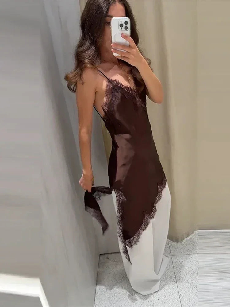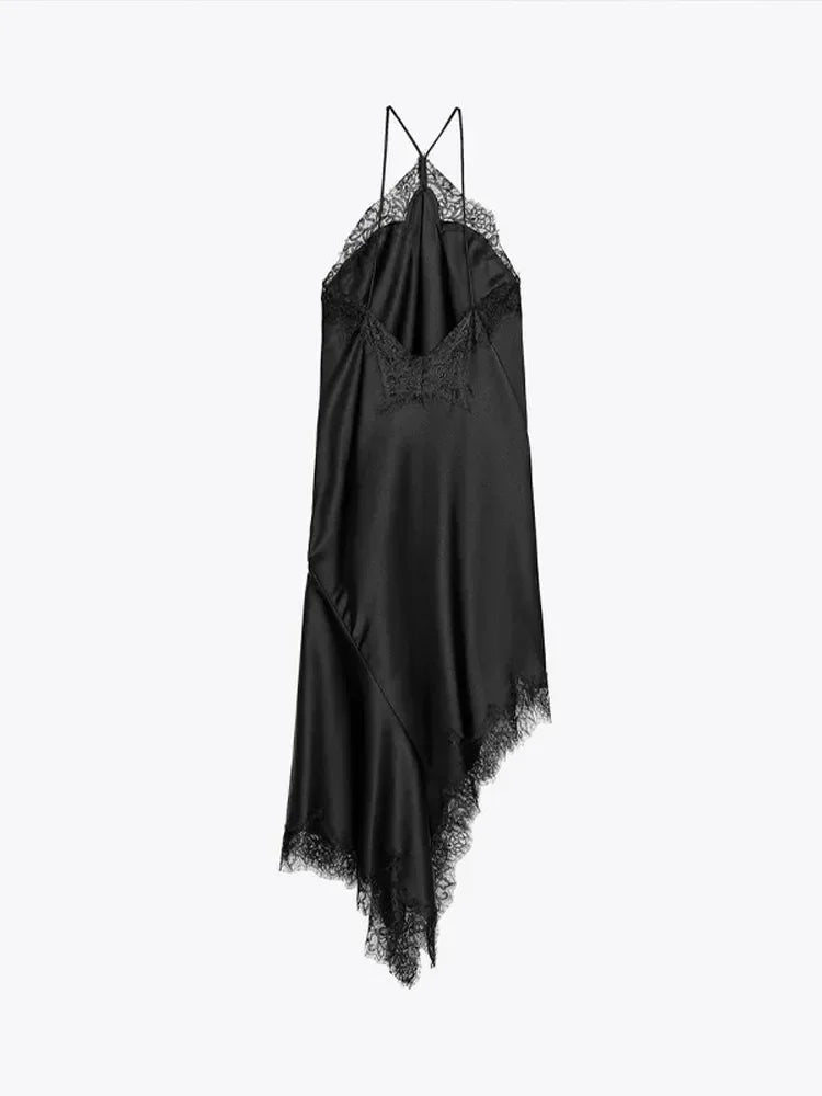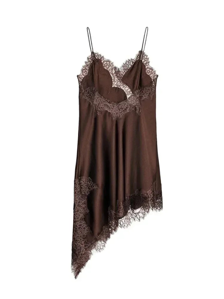 - **Style**: Satin - like slip dresses with delicate lace trim at neckline/hem. Asymmetrical hemline adds a modern, flirty touch.