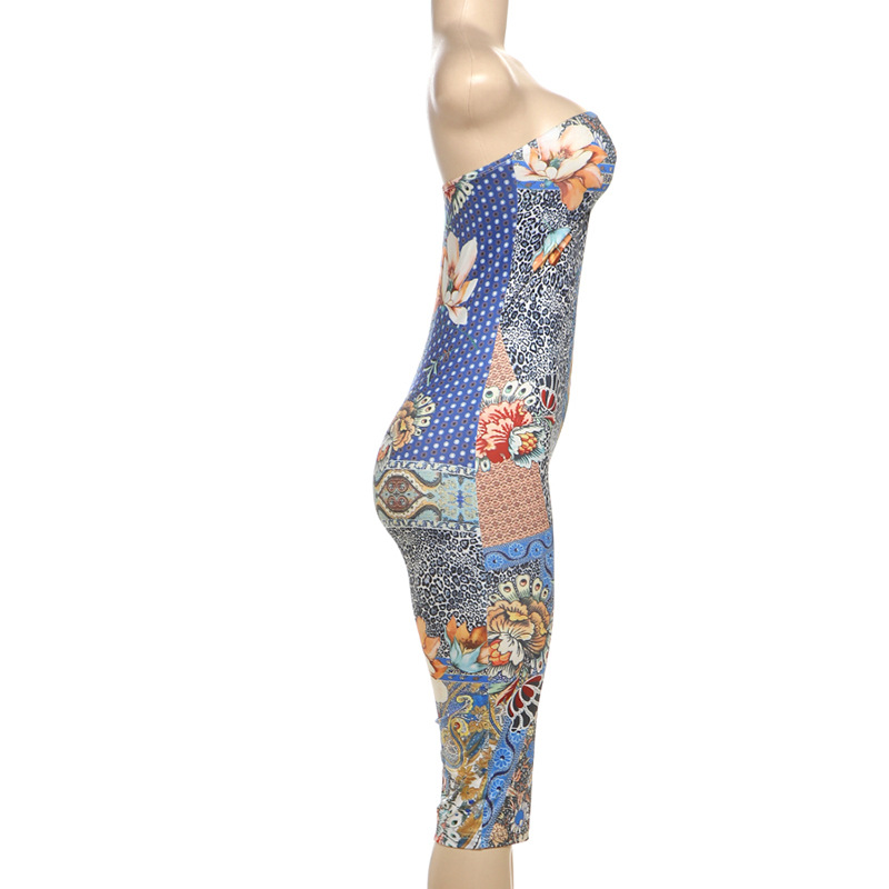 Women Spring Clothing Personalized Sleeveless Tube Top Floral Print Tight High Waist Jumpsuit