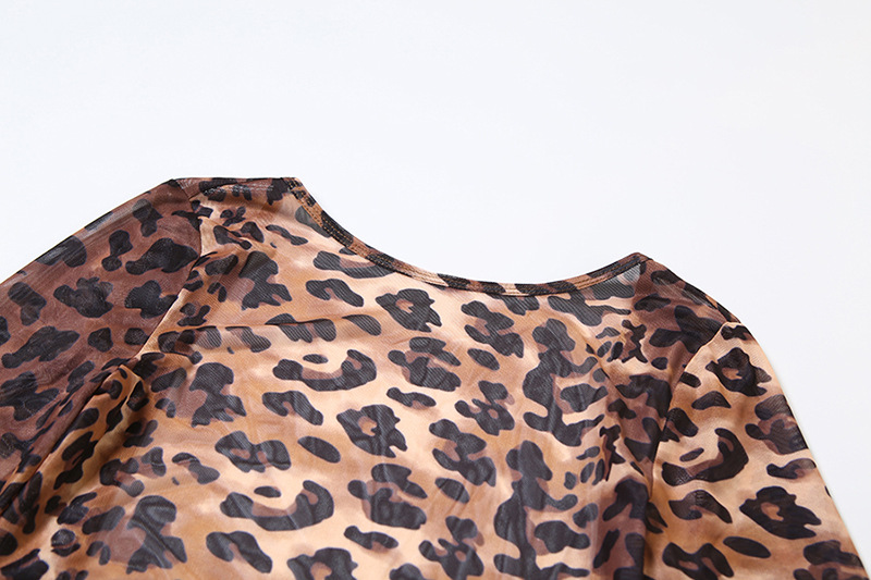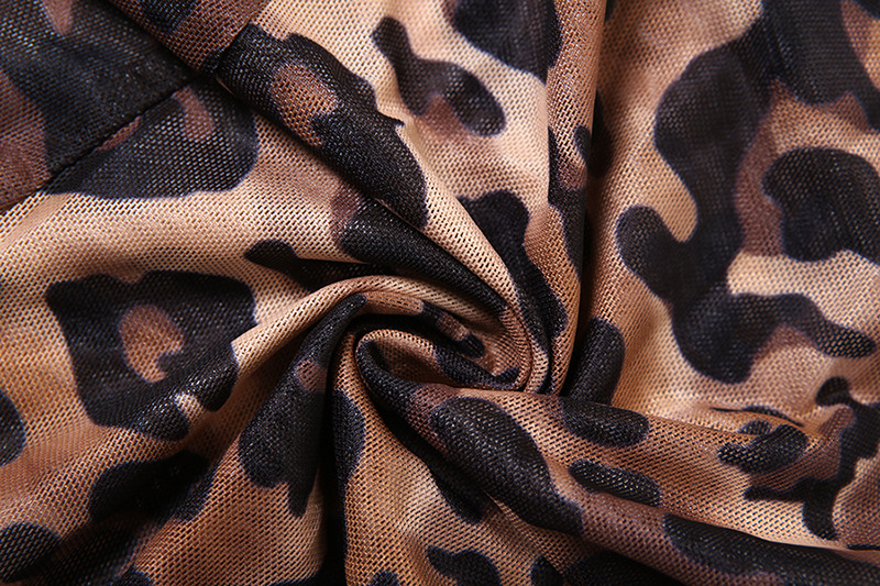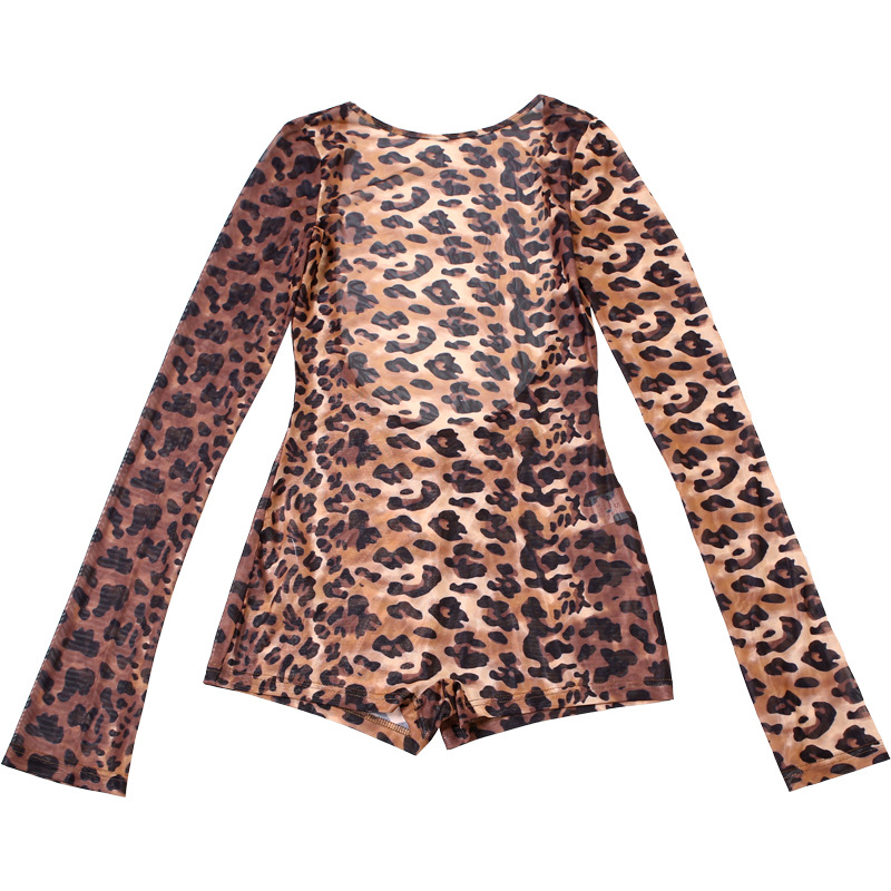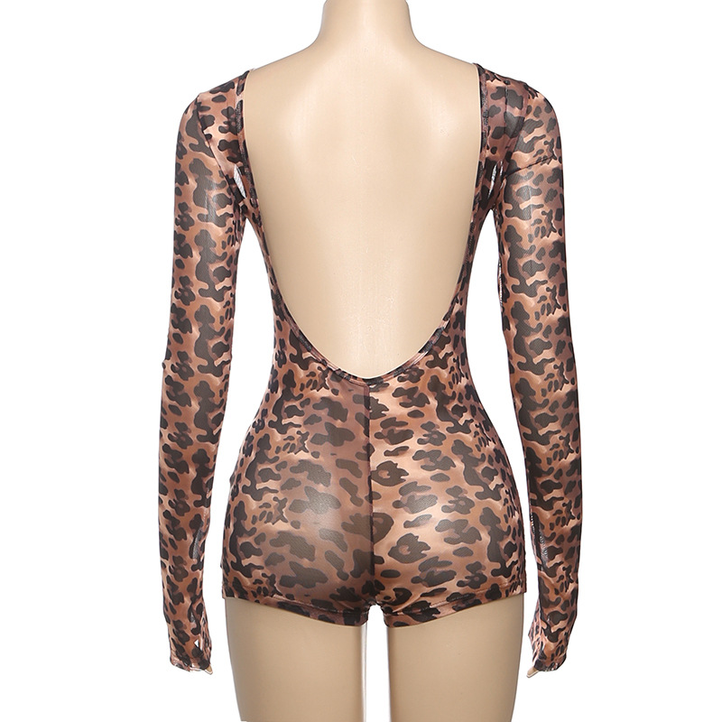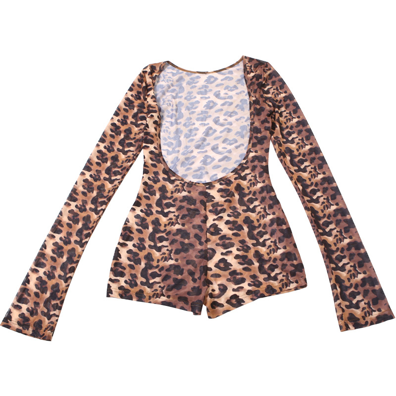 Women Spring Clothing Sexy Horn Long Sleeve Contrast Color Leopard Print Backless Sexy Siamese Shorts