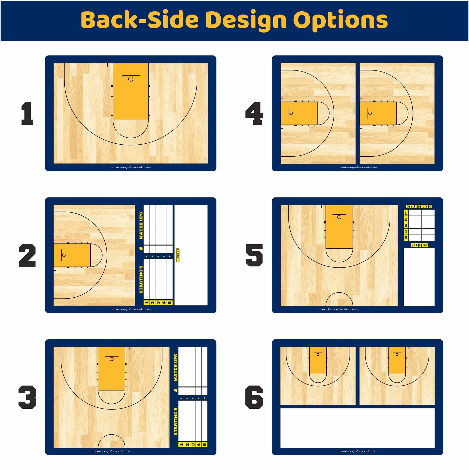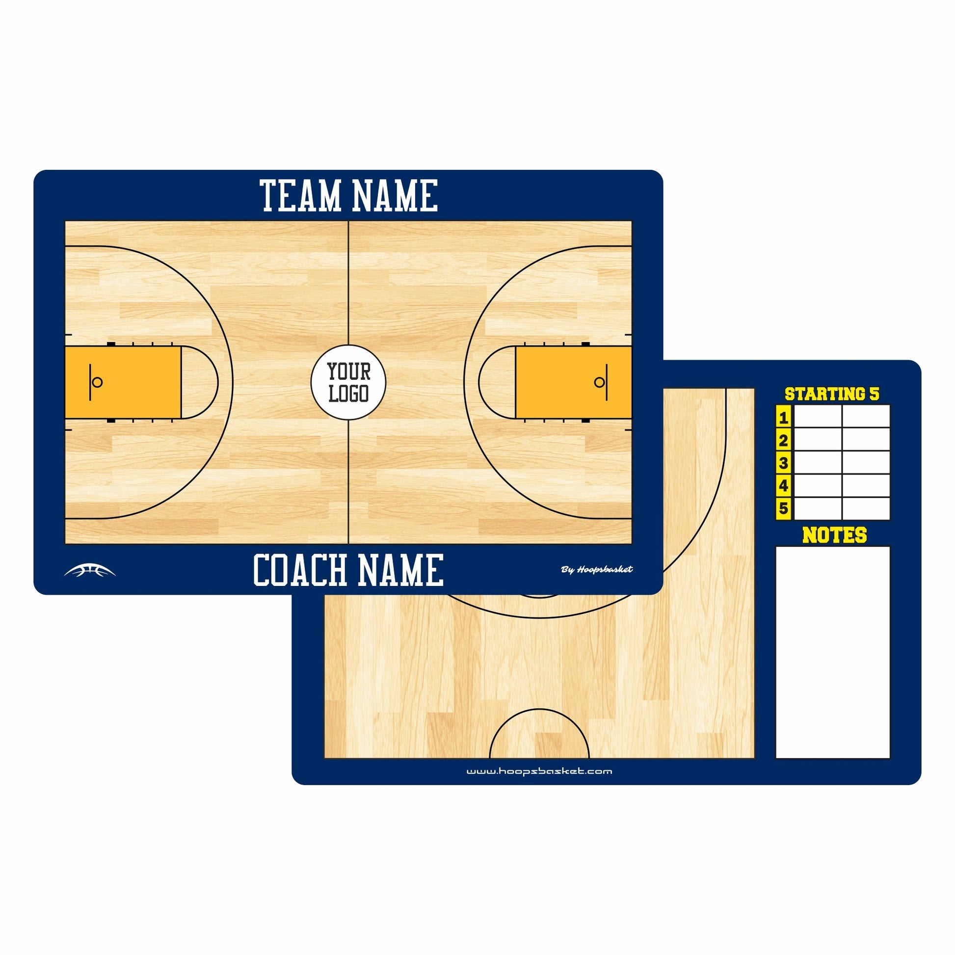 Choose from three different sizes and personalize your board with your name, color, and team logo. Six layout options on the backside allow maximum flexibility for your plays. Both front and back sides are fully customizable to match your team’s identity.