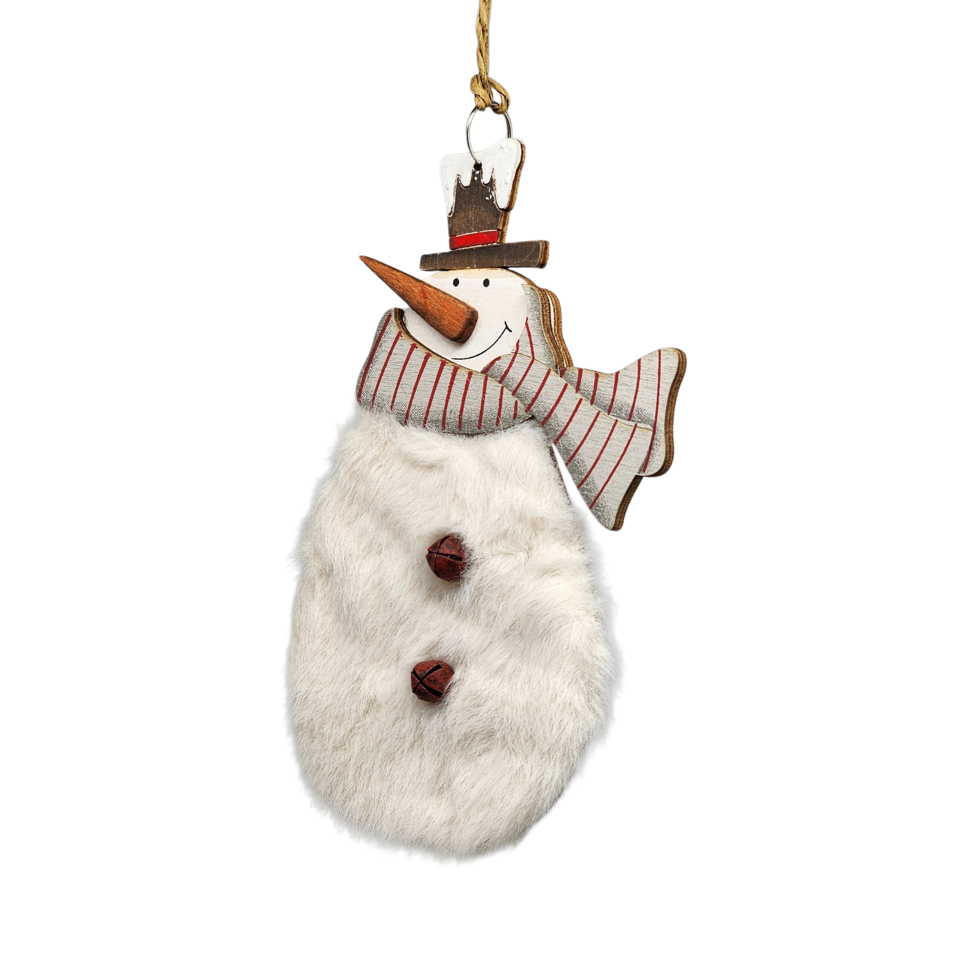 Bring a touch of whimsy to your holiday decor with our Jolly Snowman with Bowler Hat Ornament! Measuring approximately 5.25 inches by 3.25 inches, this delightful ornament features a hand-painted wooden face complete with a dapper brown bowler hat and a festive scarf. The soft, furry body adds a cozy texture, making it a perfect addition to your Christmas tree or winter-themed displays. With charming metal buttons, this snowman is bound to spread cheer and delight!