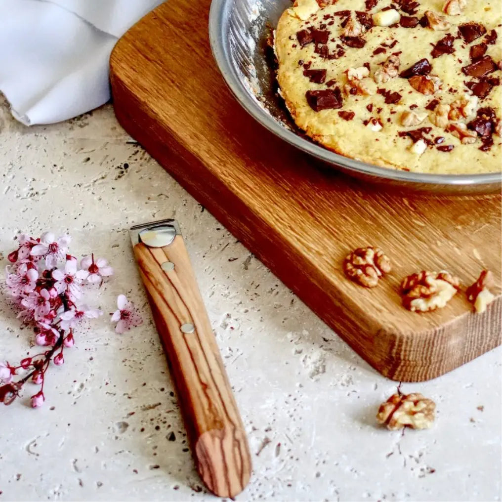 Add some romanticism to your cookware with our new wooden long handle, available in walnut, beech and olive. All handles fit all CRISTEL® vessels thanks to our patented detachable handle system. Handles allow you to turn a cooking pan into a serving vessel. Vessels are designed to nest so without handles you can get 23 items in a cookware drawer versus 6 to 7 with conventional cookware. Handles are secure and will not come off without unlocking the patented handle mechanism. The Walnut handle is not dishwasher safe. Do not place in broiler or microwave.
